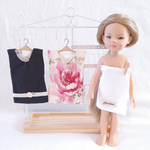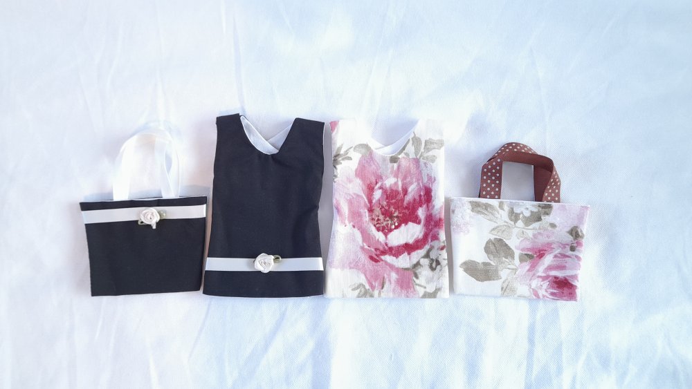 L'ensemble comprend 2 jolies robes et leurs sacs assortis pour habiller votre poupée.