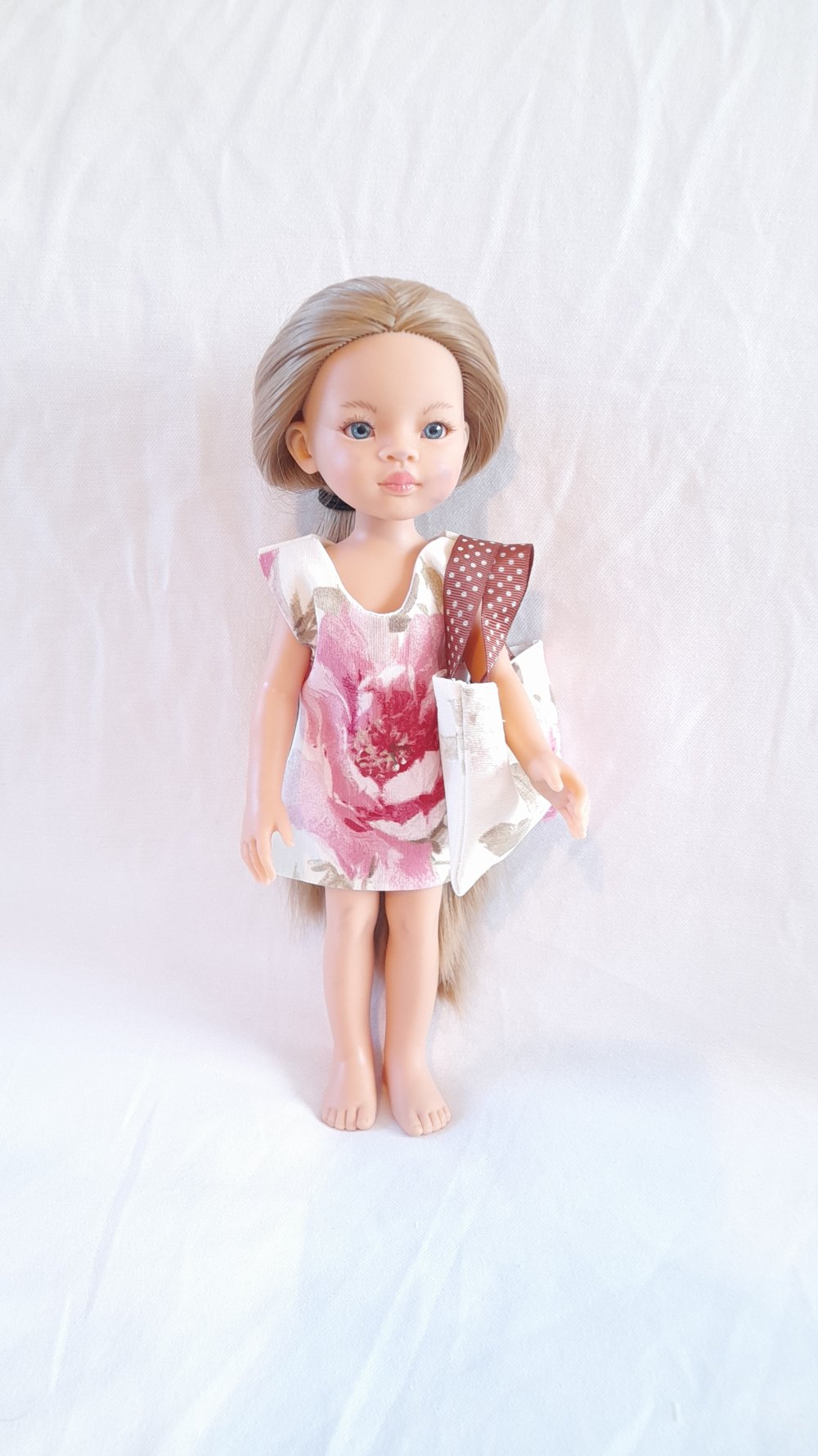 Ensemble de 2 robes en coton et leurs sacs assortis, cousus main, pour les poupées 32 cm "Les Chéries" de Corolle, ou "Paola Reina" de Las Amigas