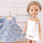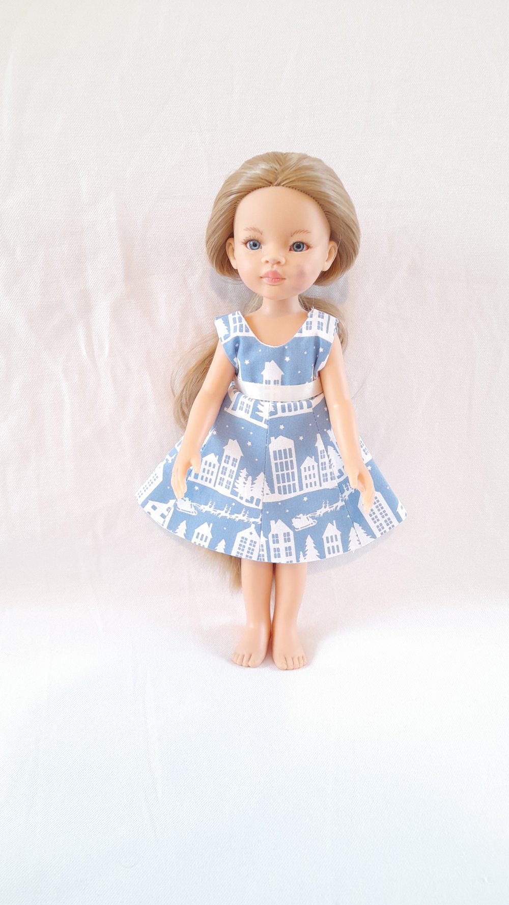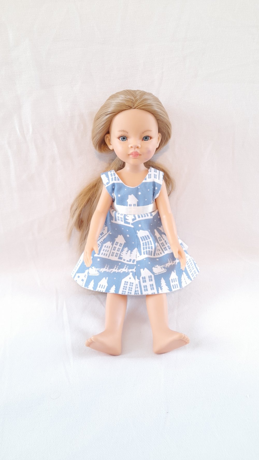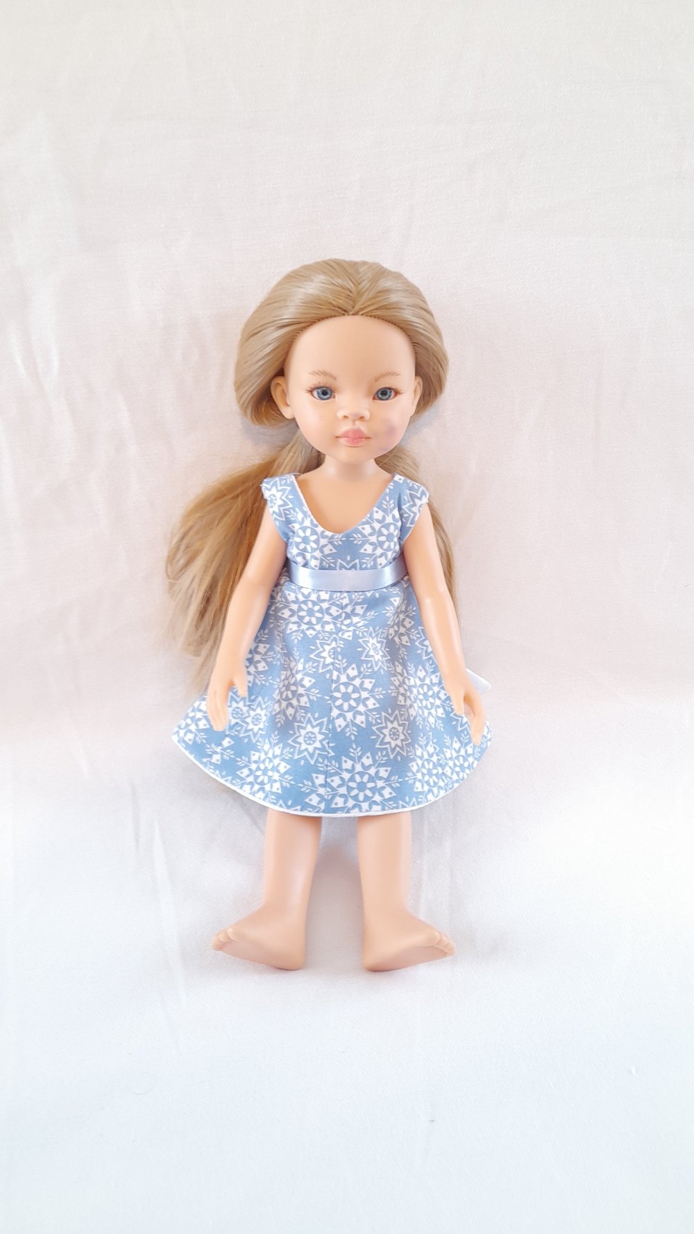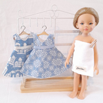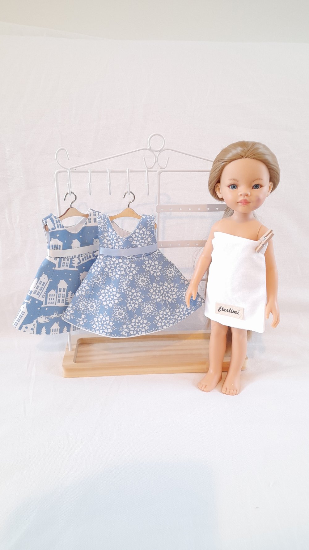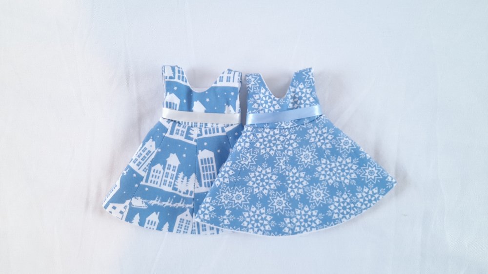 L'ensemble comprend 2 jolies robes pour habiller votre poupée, dans les tons de Noël bleu.