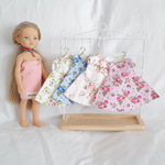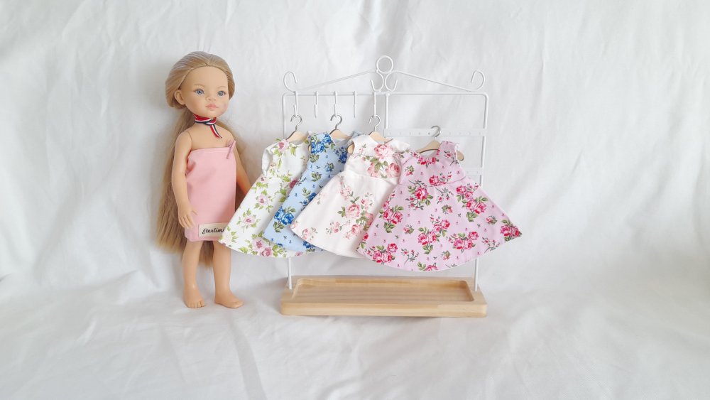 L'ensemble comprend 4 jolies robes pour habiller votre poupée, dans des tons fleuris.