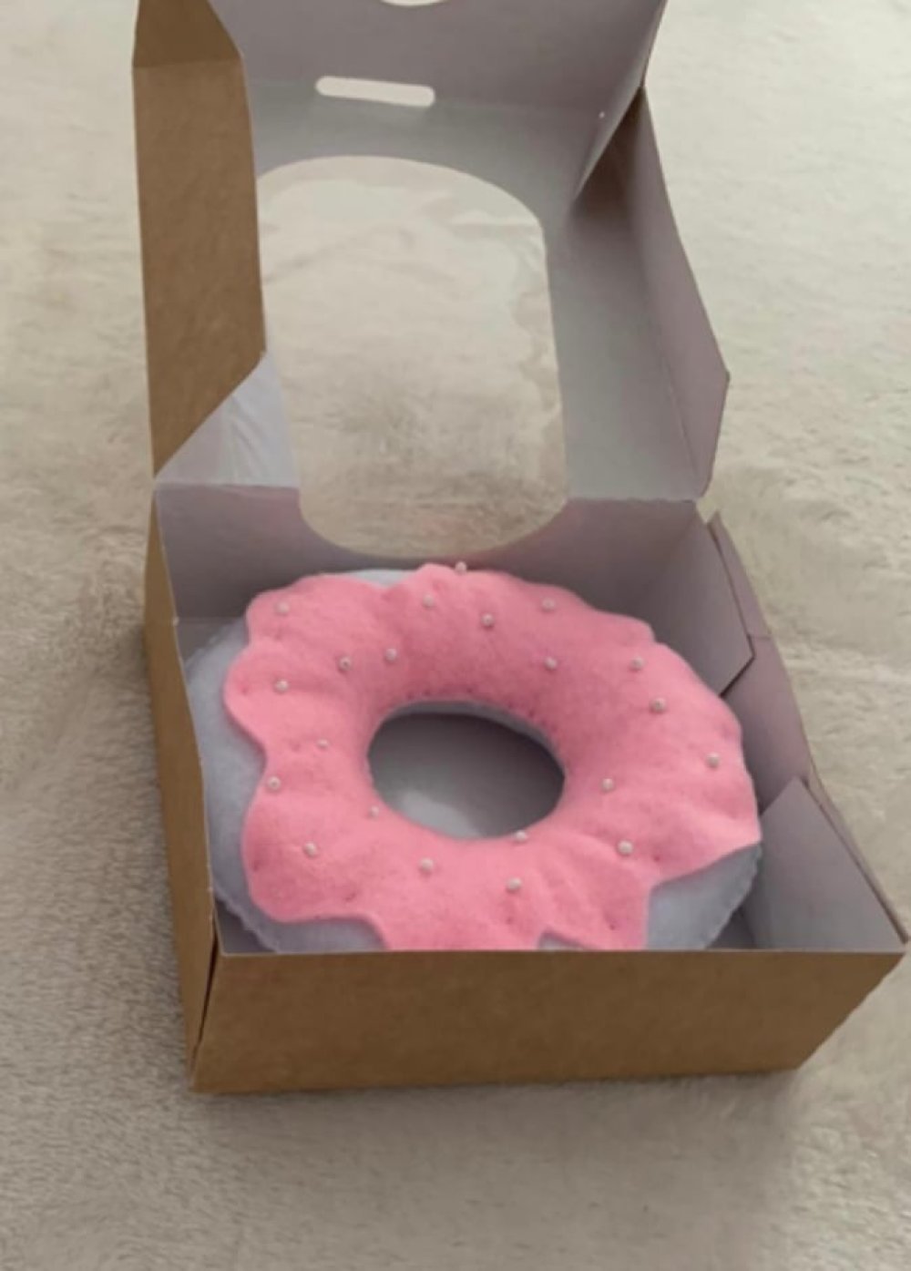 Donuts en feutrine blanc et rose, idéal pour jeu de dinette ou de marchande.