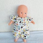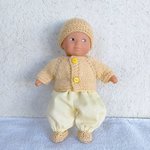 Habits pour mini Calin (poupon 20 cm, Corolle) : un pyjama, un pantalon, deux gilets, un bonnet et des chaussons