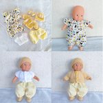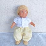 Habits pour mini Calin (poupon 20 cm, Corolle) : un pyjama, un pantalon, deux gilets, un bonnet et des chaussons