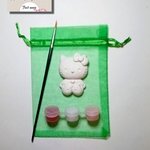 Ce kit contient : 1 figurine en plâtre, 1 Pinceau, 3 petits pots de peinture acrylique.