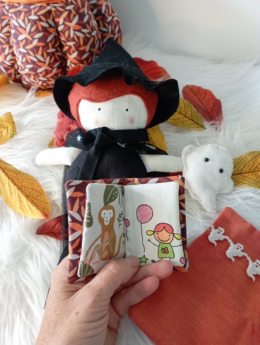 Petite poupée et sa citrouille , jouet en tissu , halloween