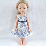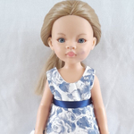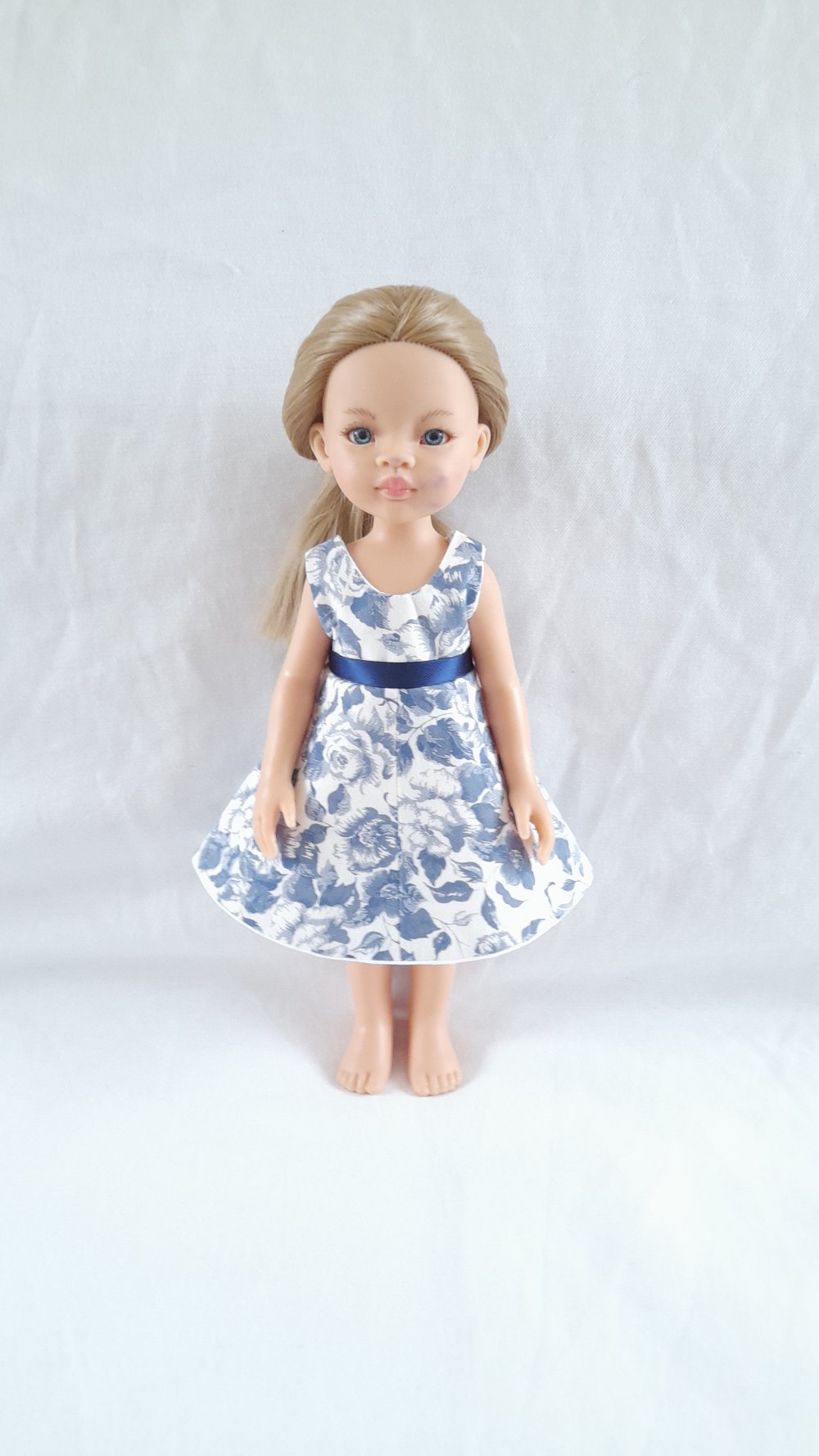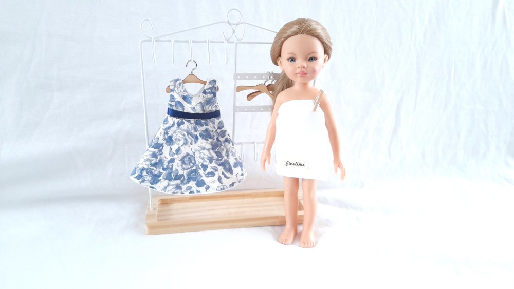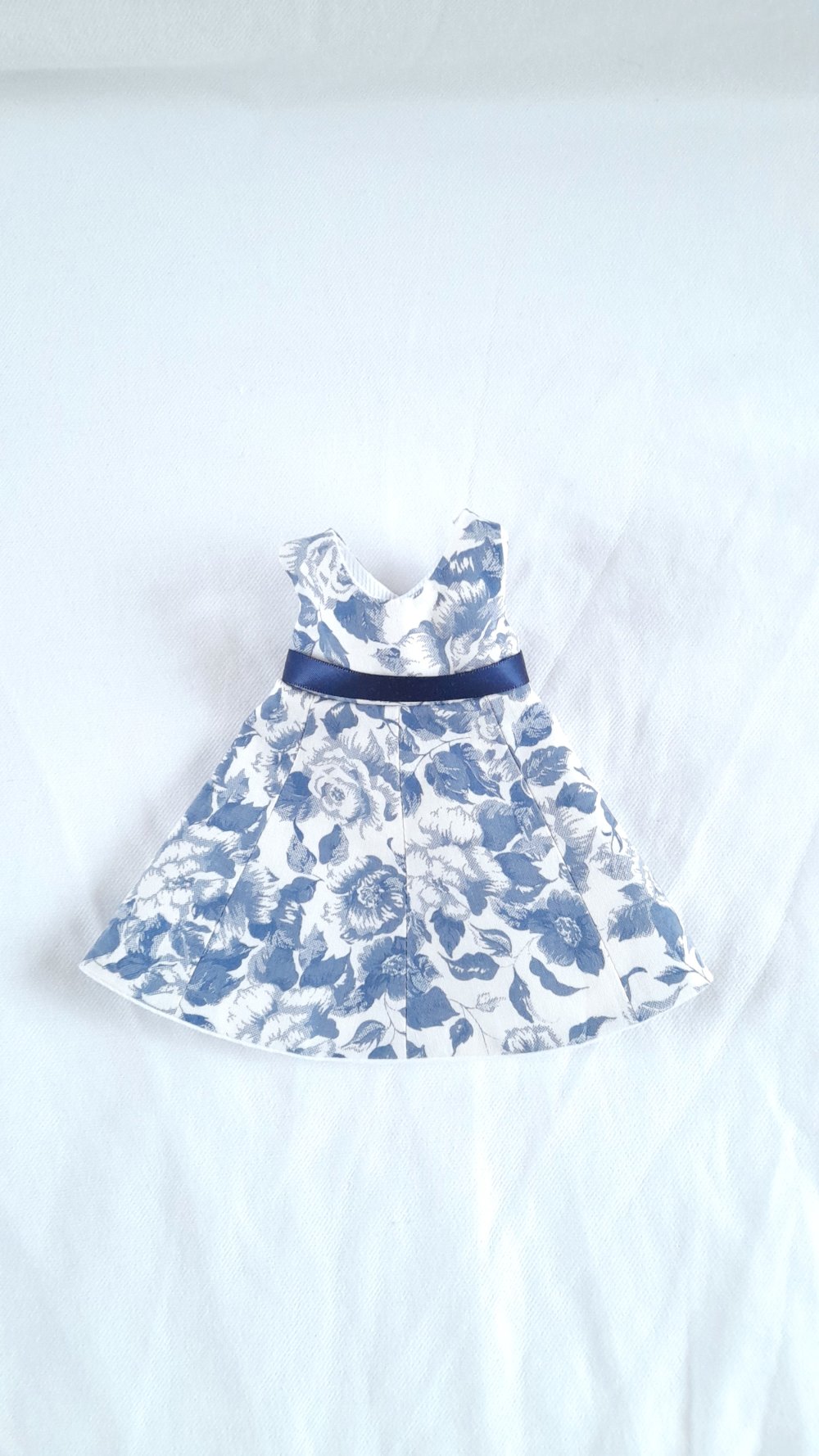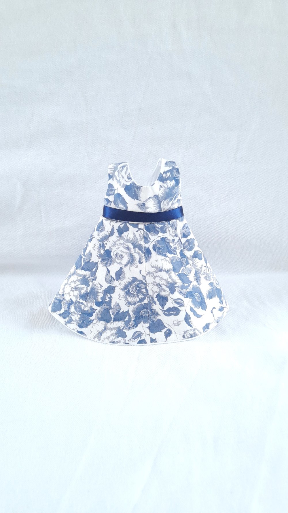 Jolie robe dans les tons bleus pour habiller votre poupée.