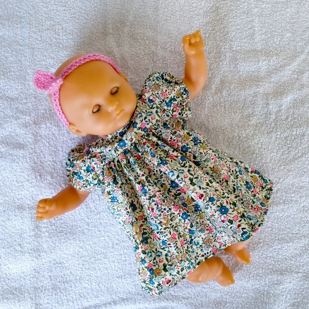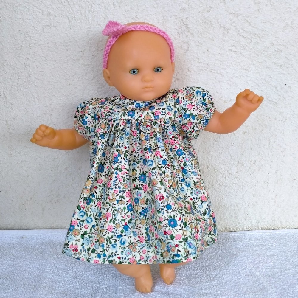 Robe pour poupon de 30 cm au corps souple comme Bébé Calin ou Bébé Bain de Corolle. L'ensemble comprend :