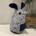 Elle mesure environ 10 cm sans les oreilles . Elle est rembourrée et lestée avec du riz