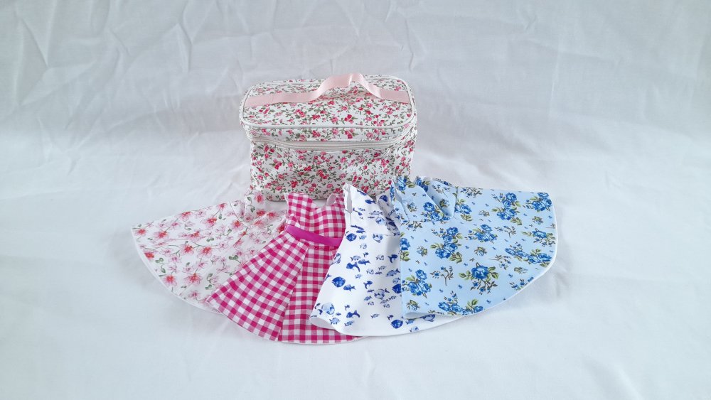 Ensemble de 4 robes en coton et cousues main, dans une jolie trousse fleurie