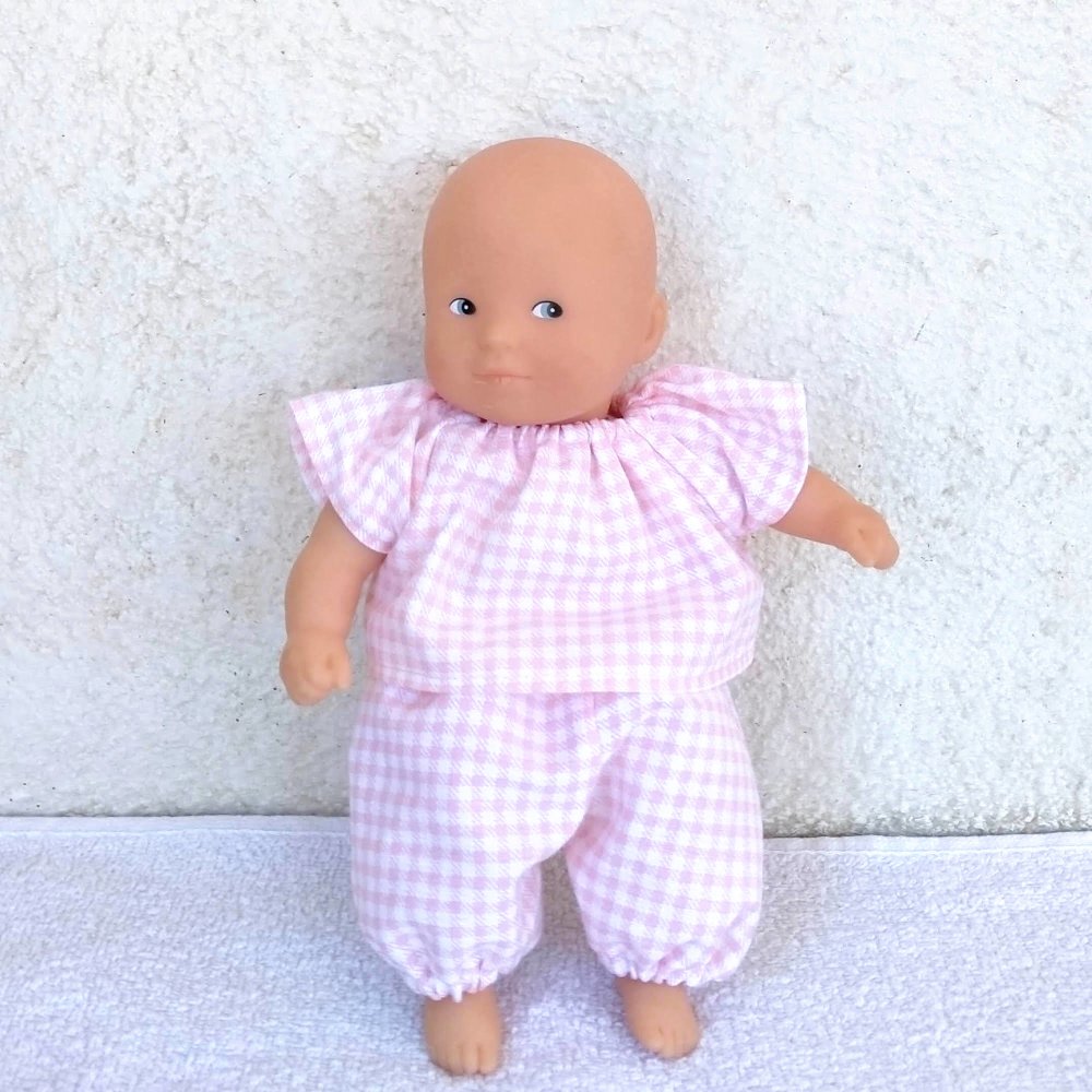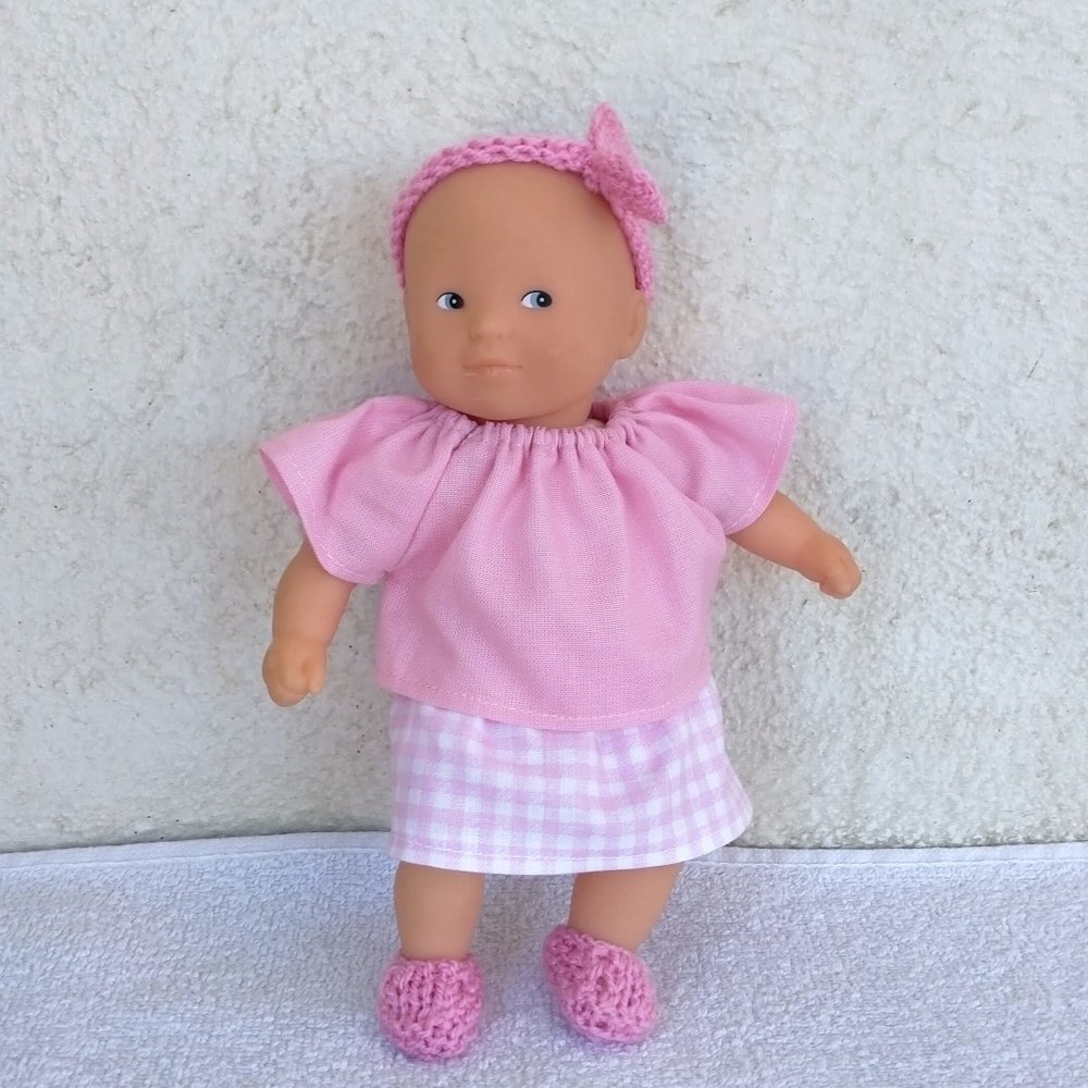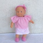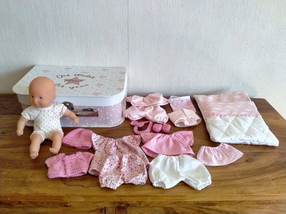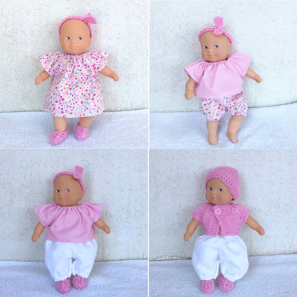 - un poupon Corolle de 20 cm (mini Calin) au corps souple. Poupon d'occasion en très bon état, sans étiquette. Ce poupon n'a servi qu'aux essayages et aux photos.