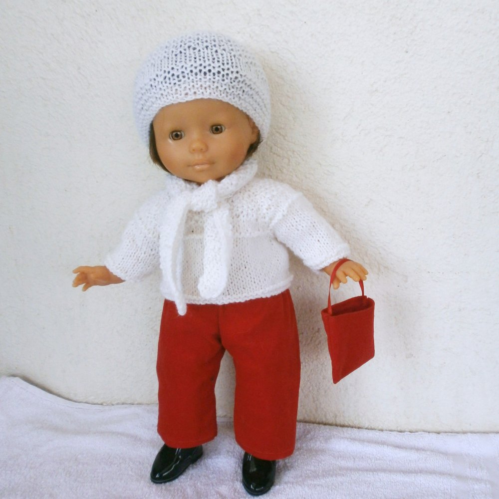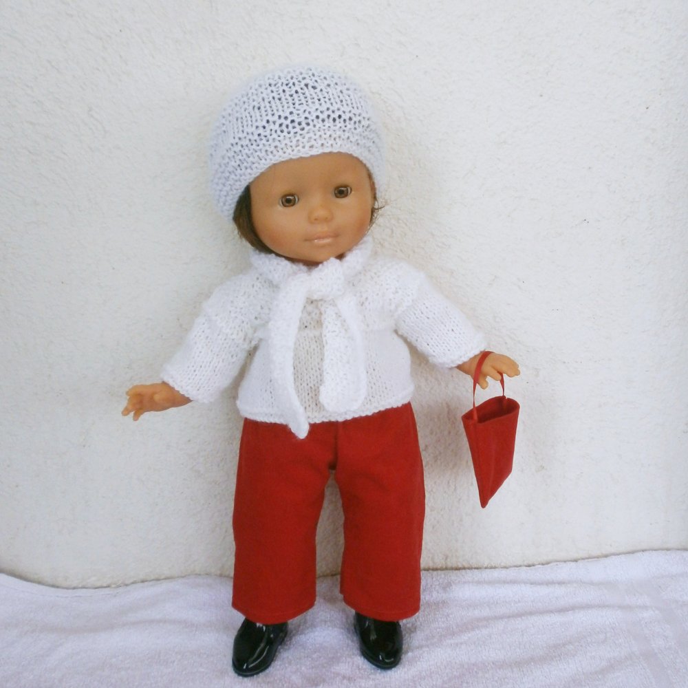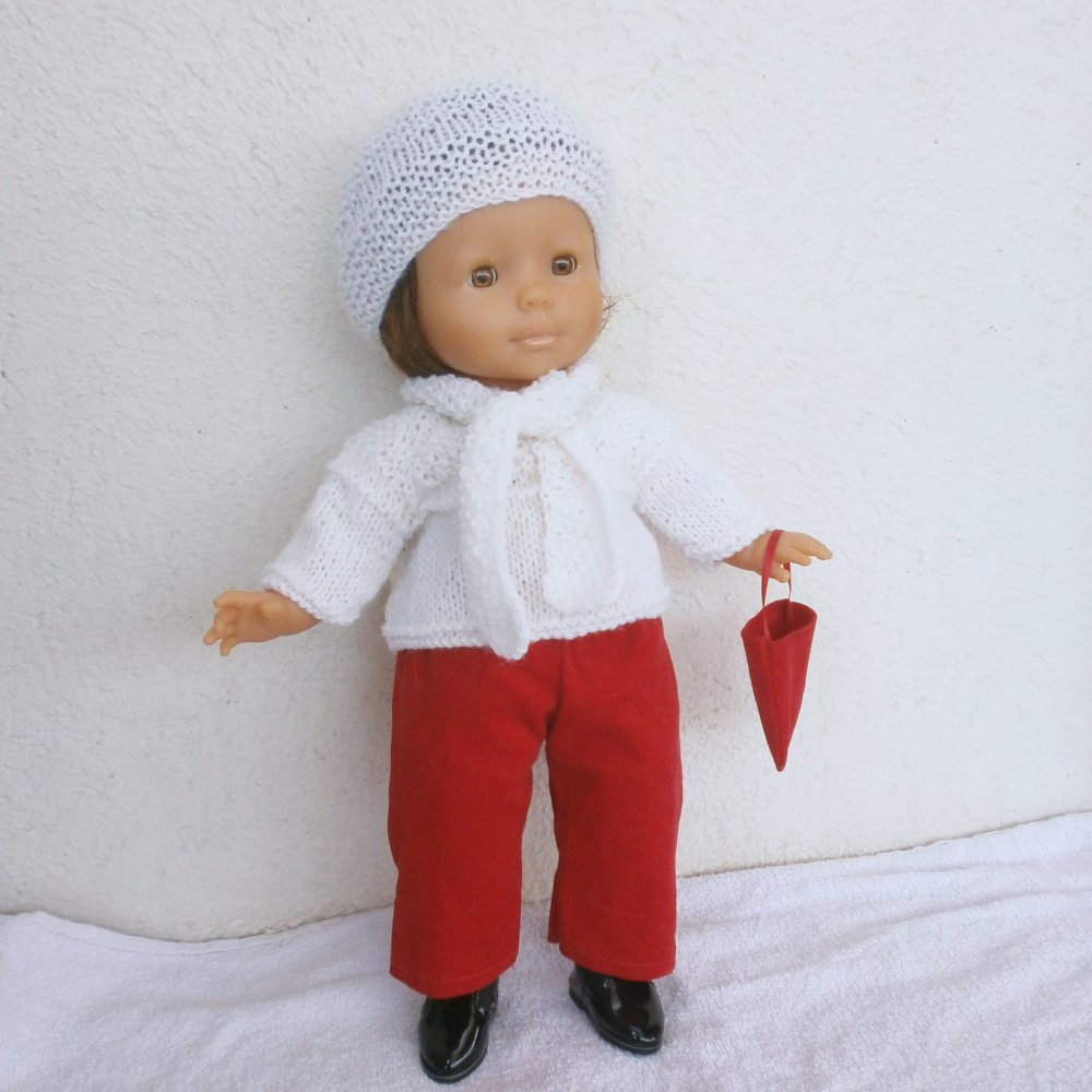 Pour poupée Corolle de 36 cm, un ensemble pantalon, pull, bonnet et écharpe