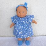 - une robe bleue à fleurs blanches, montée sur un élastique à l'encolure,