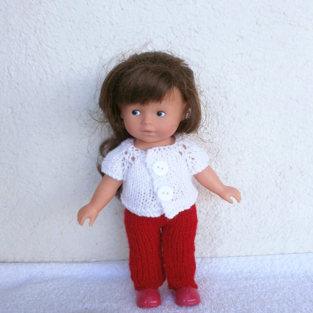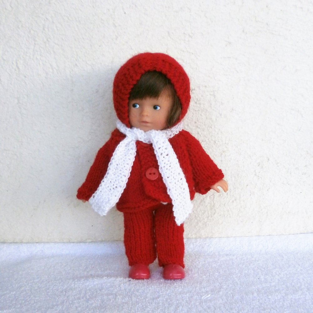 Une tenue d'hiver au tricot pour poupée de 20 cm, poupée mini Corolline. Cet ensemble pour mini poupée comprend quatre pièces :