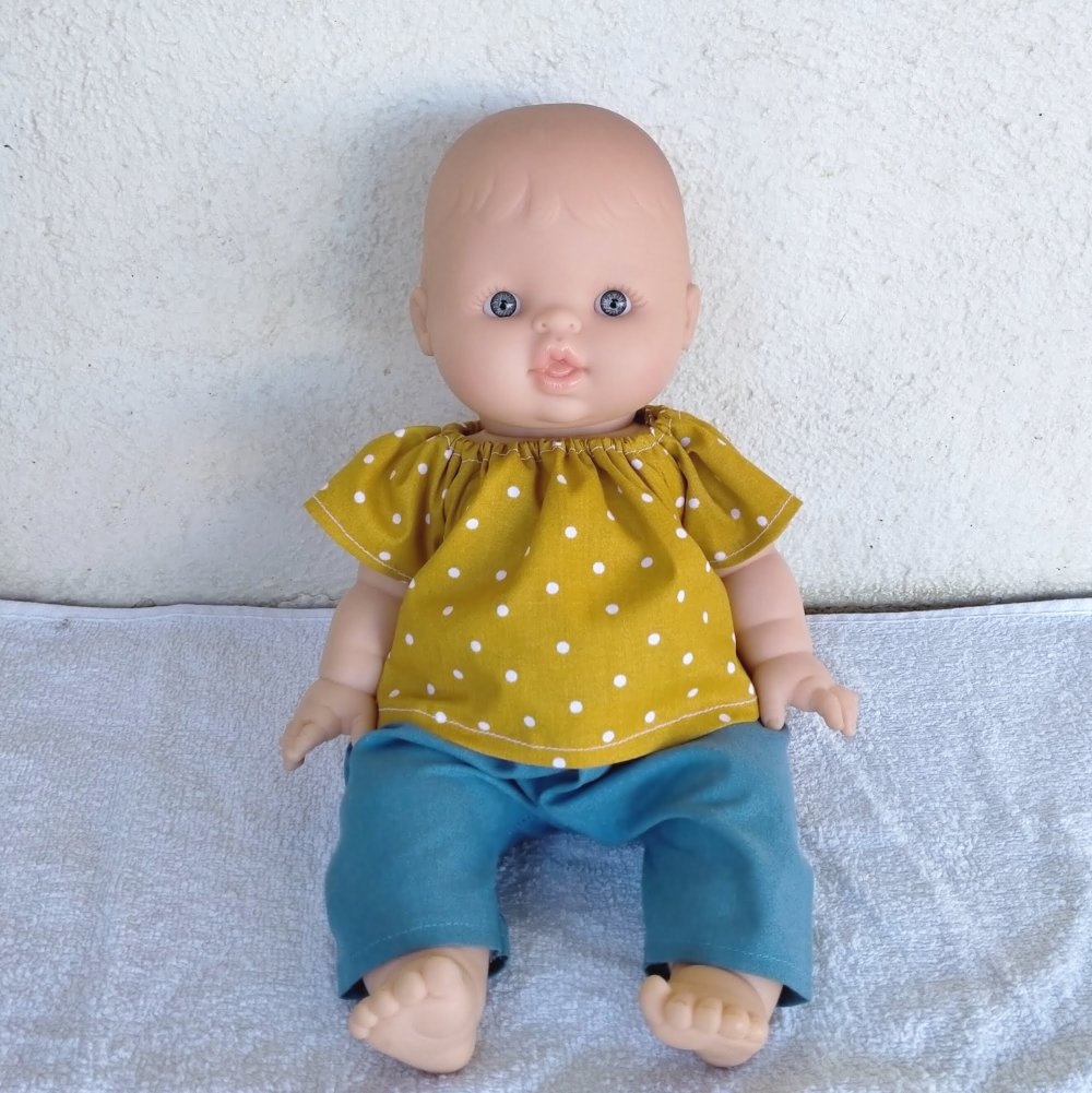 Pour poupon Minikane 34 cm, un pantalon et une tunique