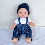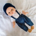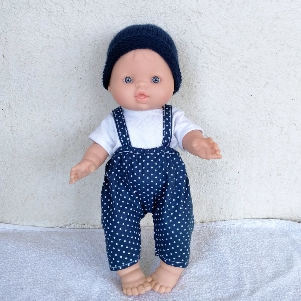 Pour poupon Minikane 34 cm, un pantalon, un T-shirt et un bonnet