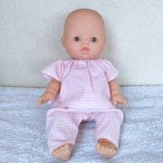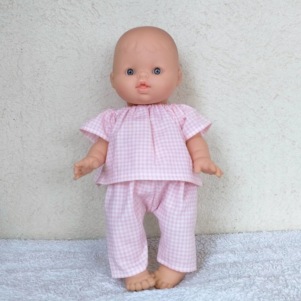 Pour poupon Minikane 34 cm, un pyjama en coton vichy rose pastel