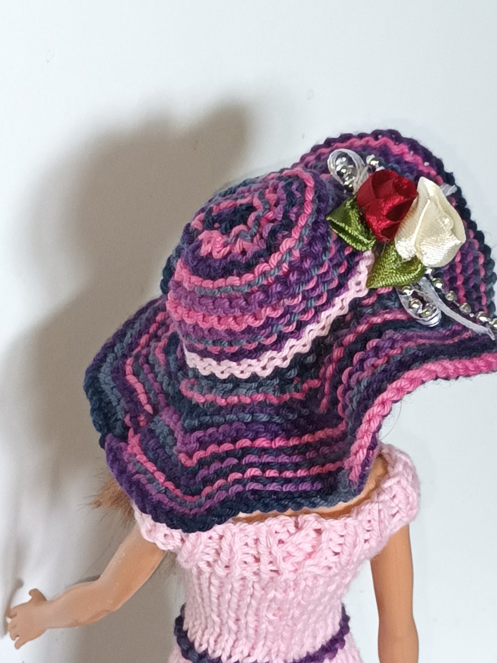 - Une capeline décorée avec un bouquet de fleurs en tissu