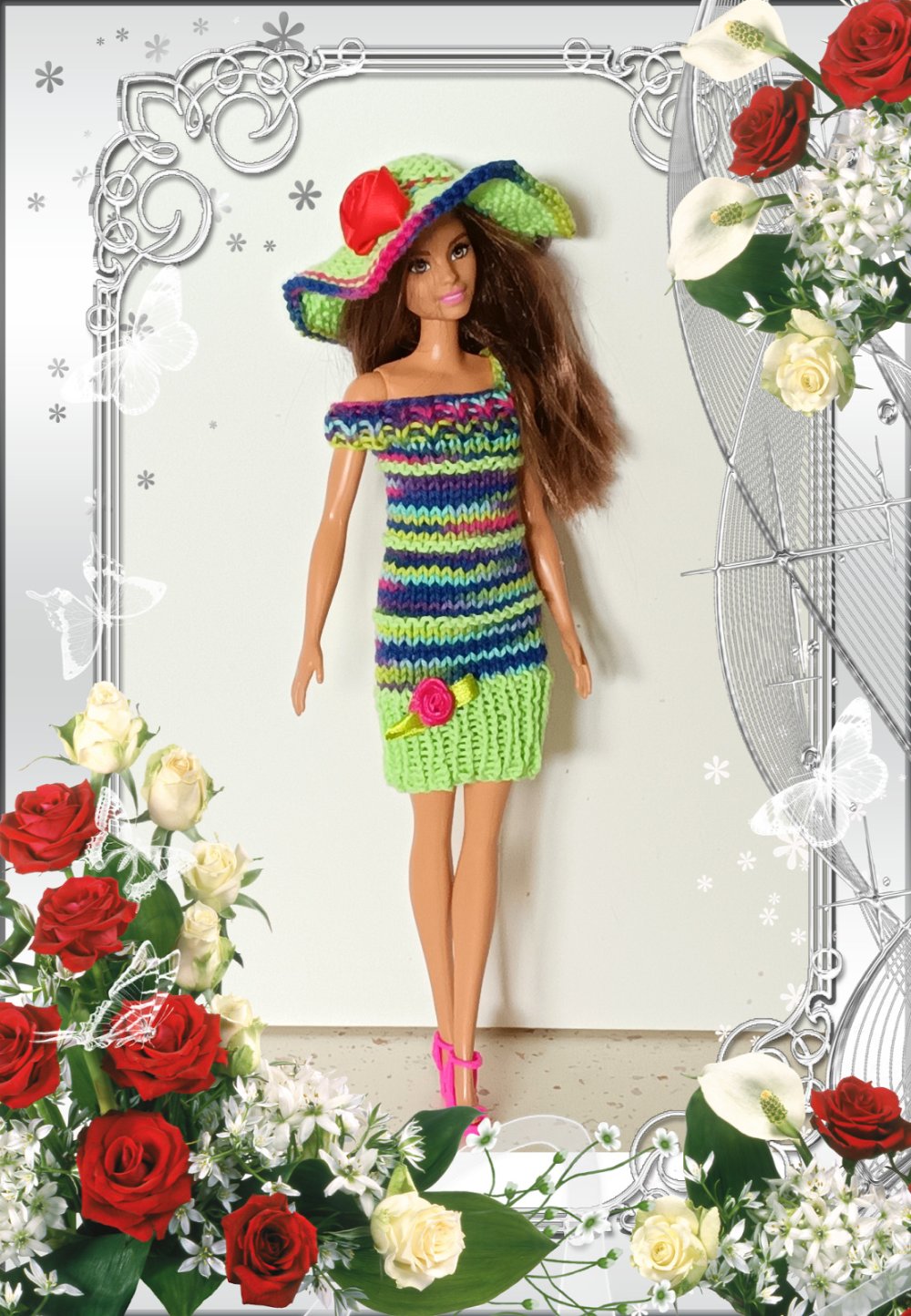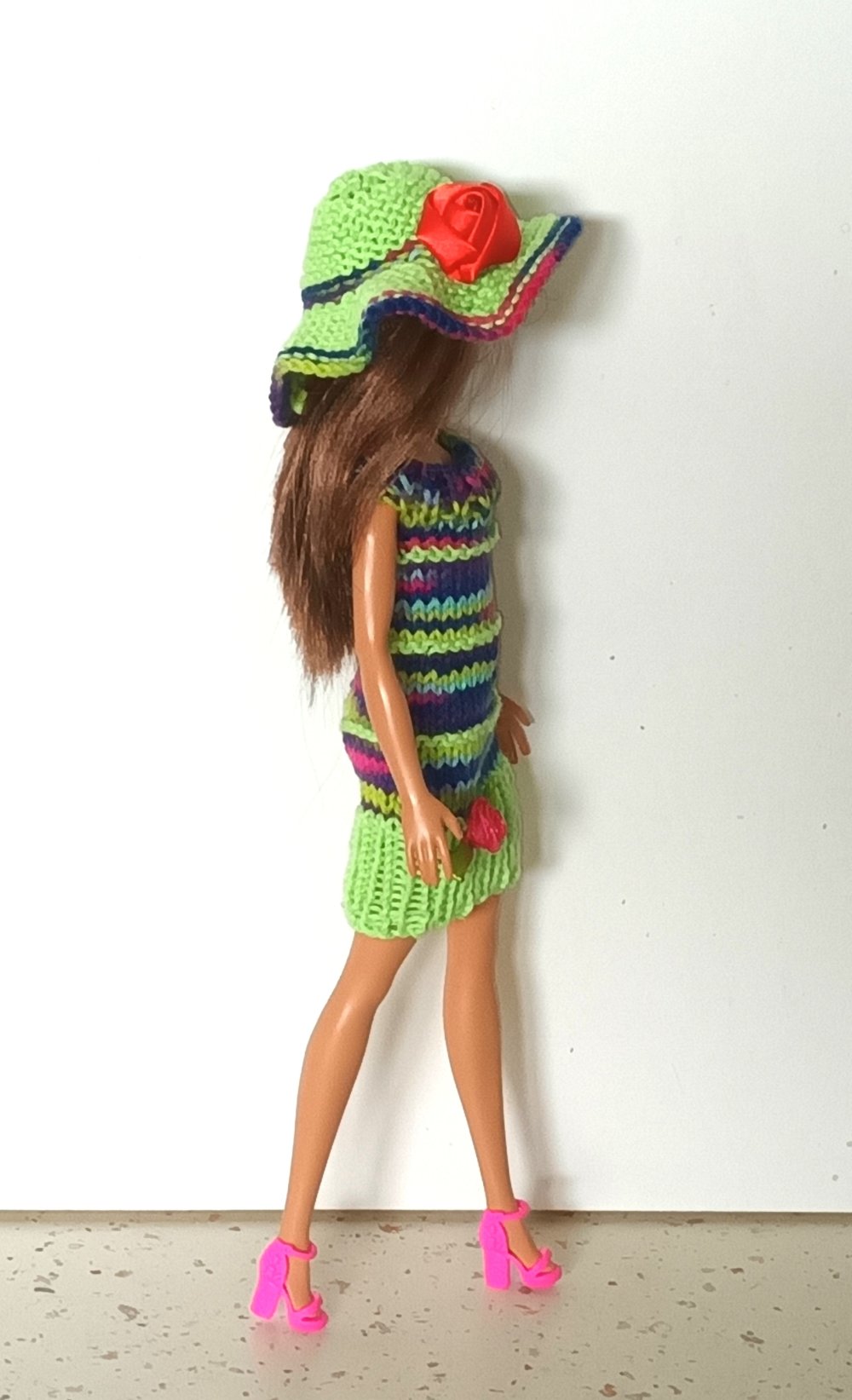 - Une robe sans manches. Enfilage facile par le bas. Décorée avec une petite fleur en tissu
