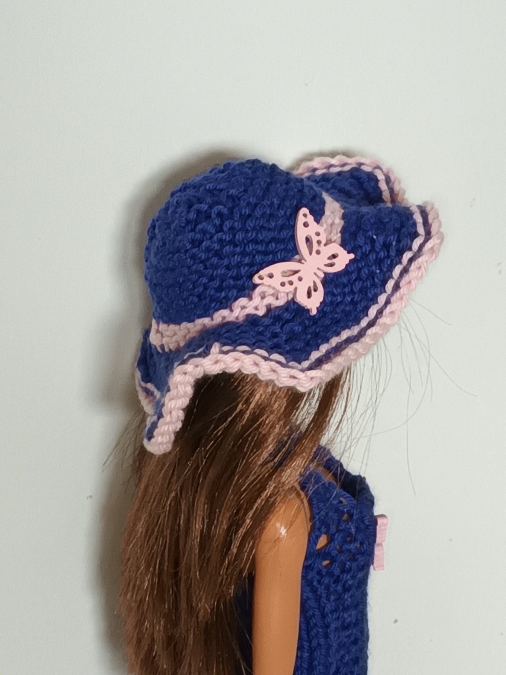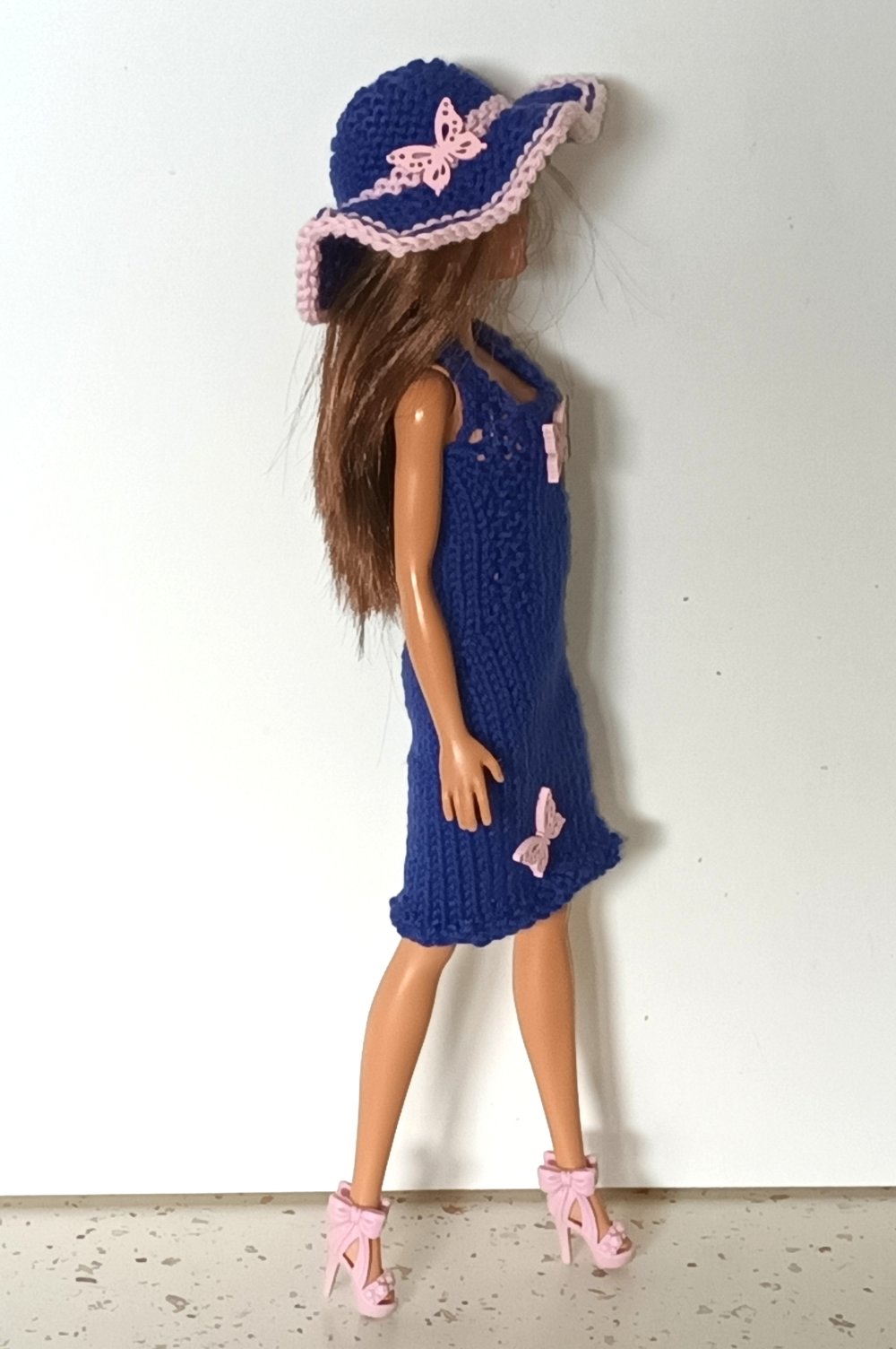 Ensemble composé de 2 pièces, tricoté en coton bleu-roi et rose