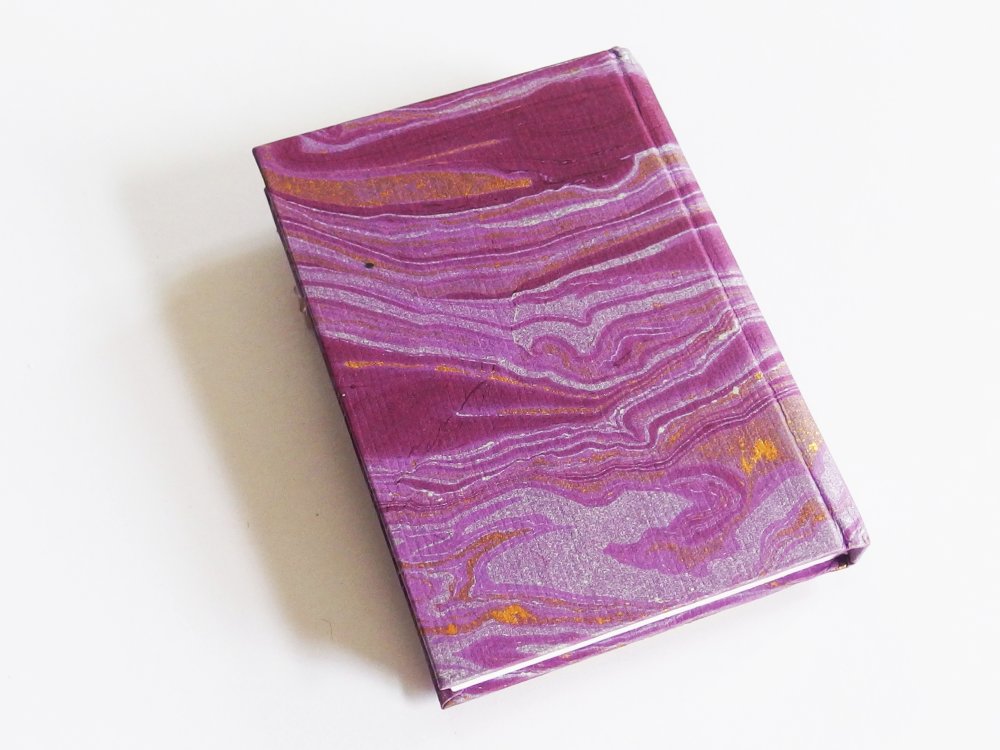 La couverture est rigide et les pages reliées (80 pages / 40 feuilles environ) sont en papier recyclé blanc 100 grammes, de belle qualité.