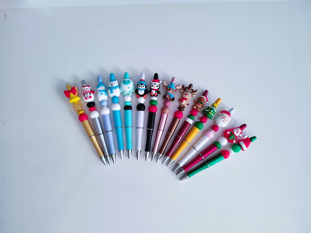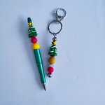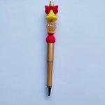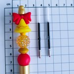 Crayon cloche de noël jaune et rouge et perles en silicone jaune et rouge