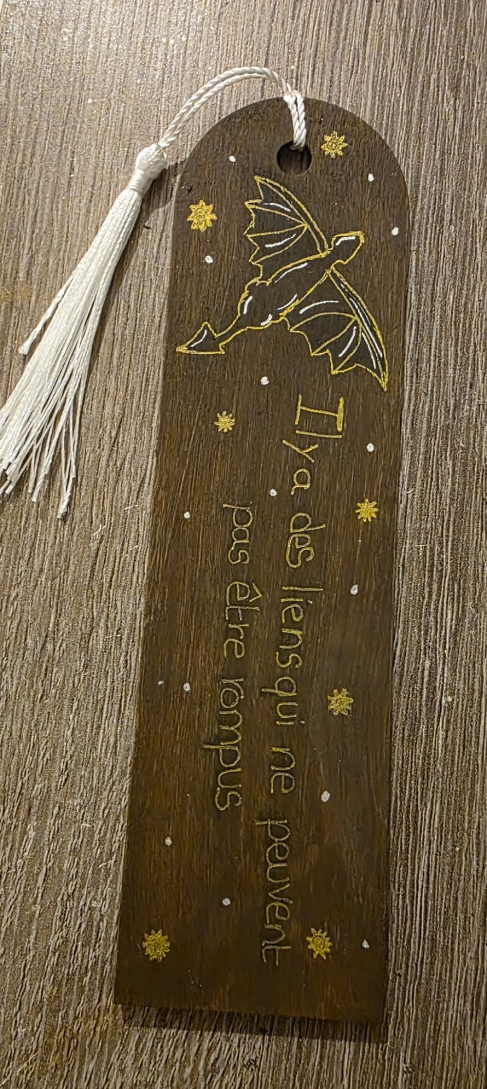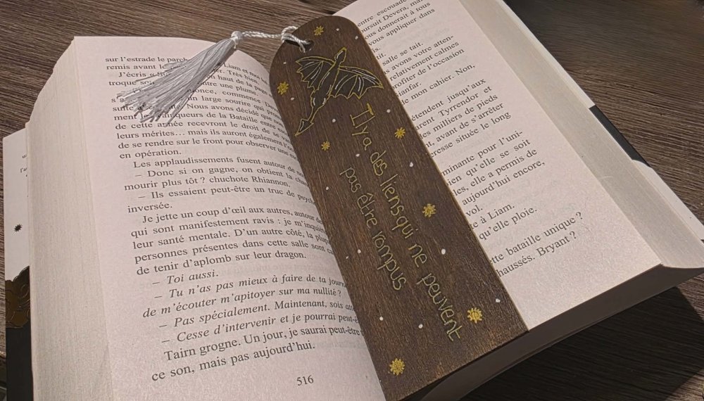 Un marque-page en bois fantasy inspiré du livre Fourth Wings