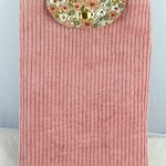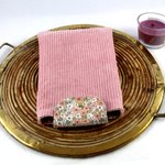 Elle est réalisée pour l' extérieur en velours côtelé de couleur bleu foncé, l'intérieur est en coton fantaisie "petites fleurs"
