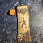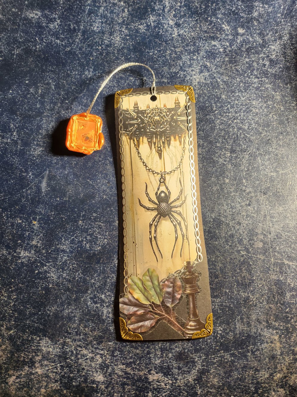 Marque-page artisanal unique mettant en avant une araignée. Finition mini cadre façon cire à cacheter