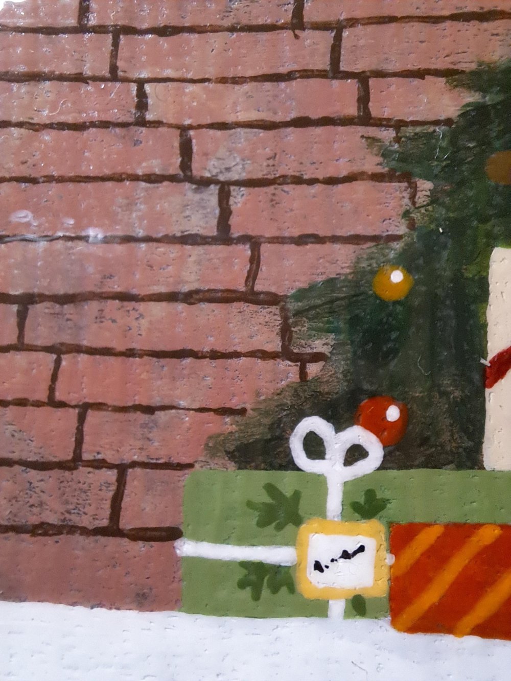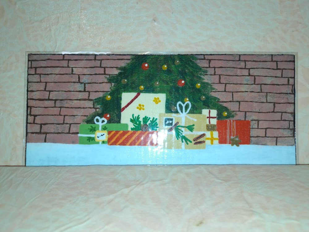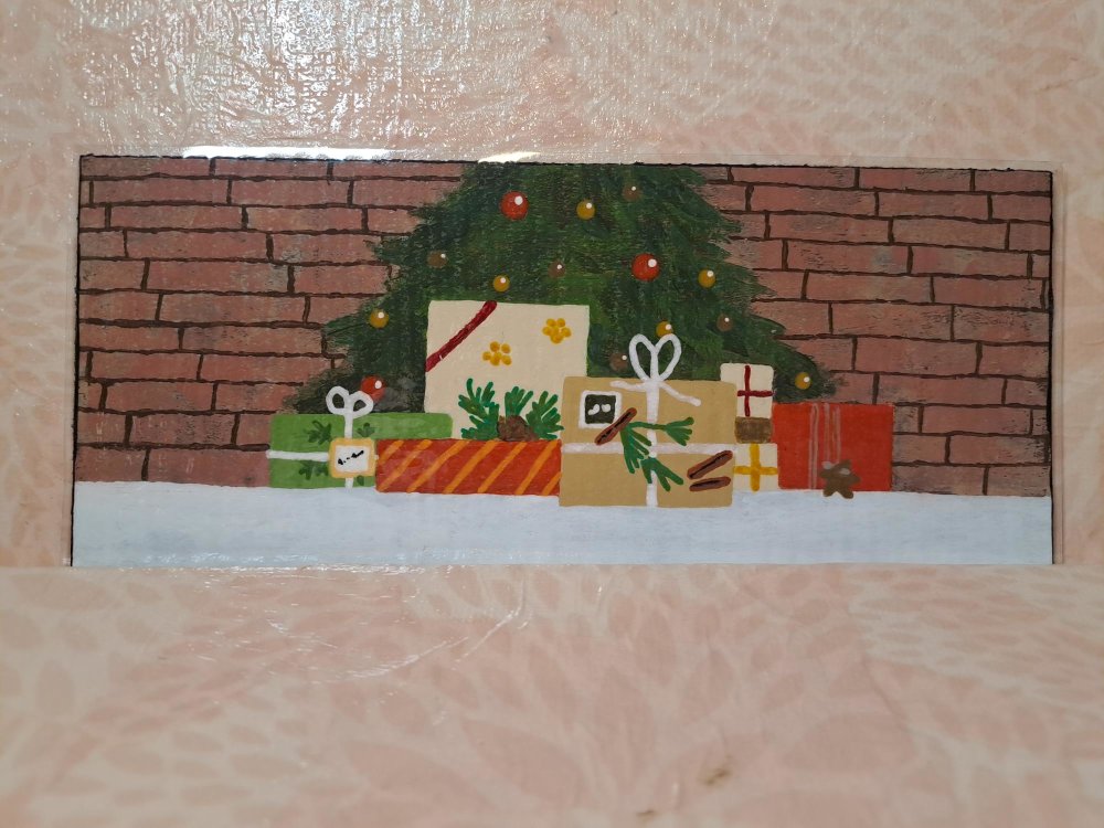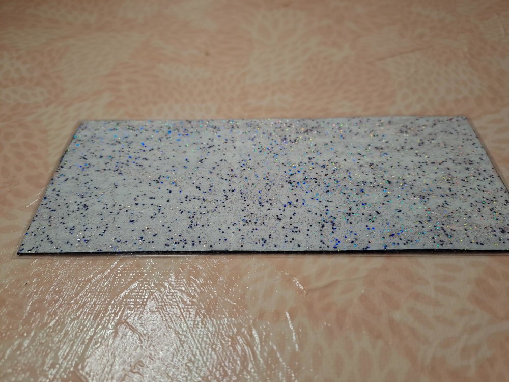 Marque-pages à base d'un morceau de carton peint à l'acrylique. Le verso et peint en blanc et recouvert de vernis pailleté.