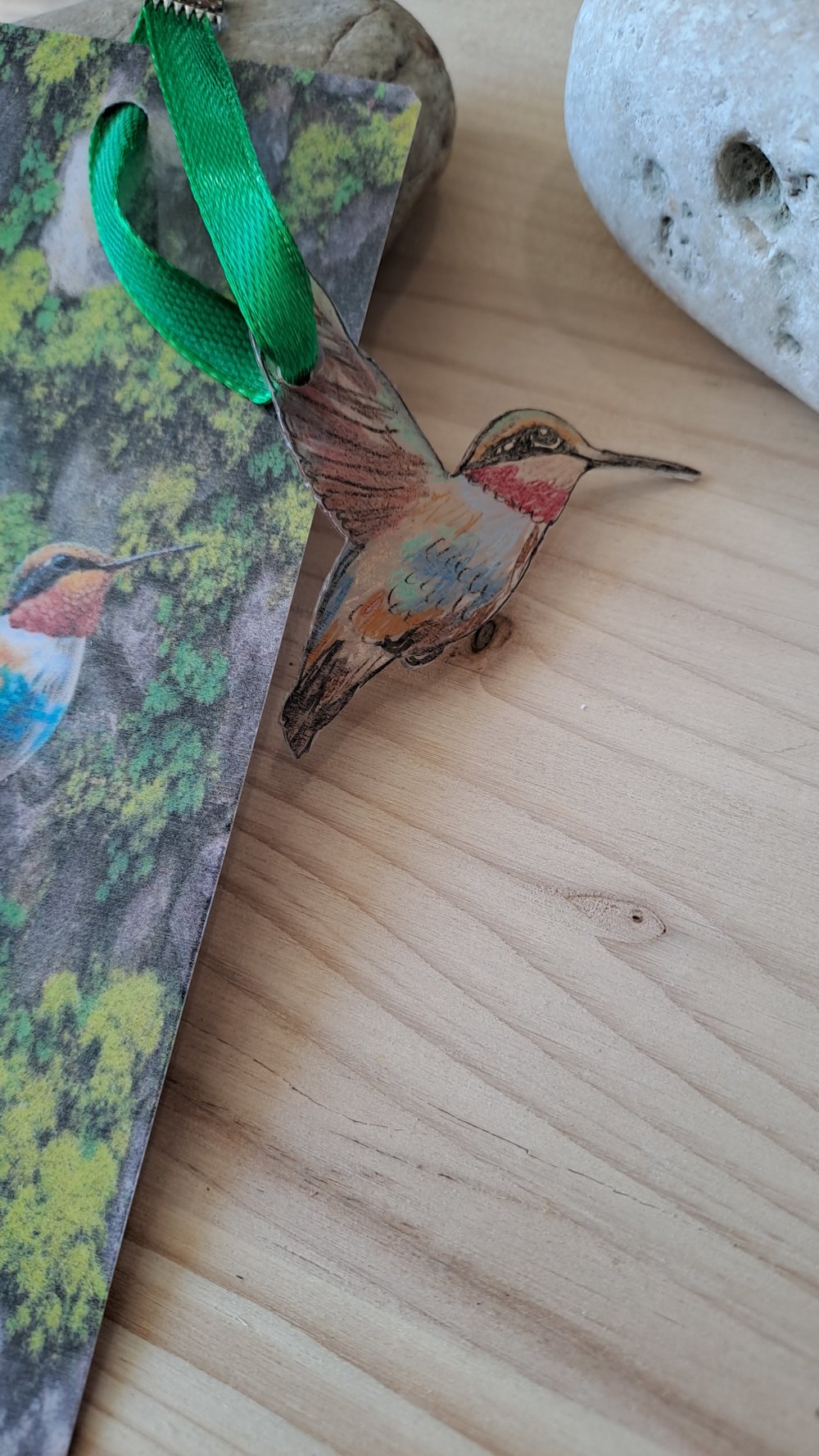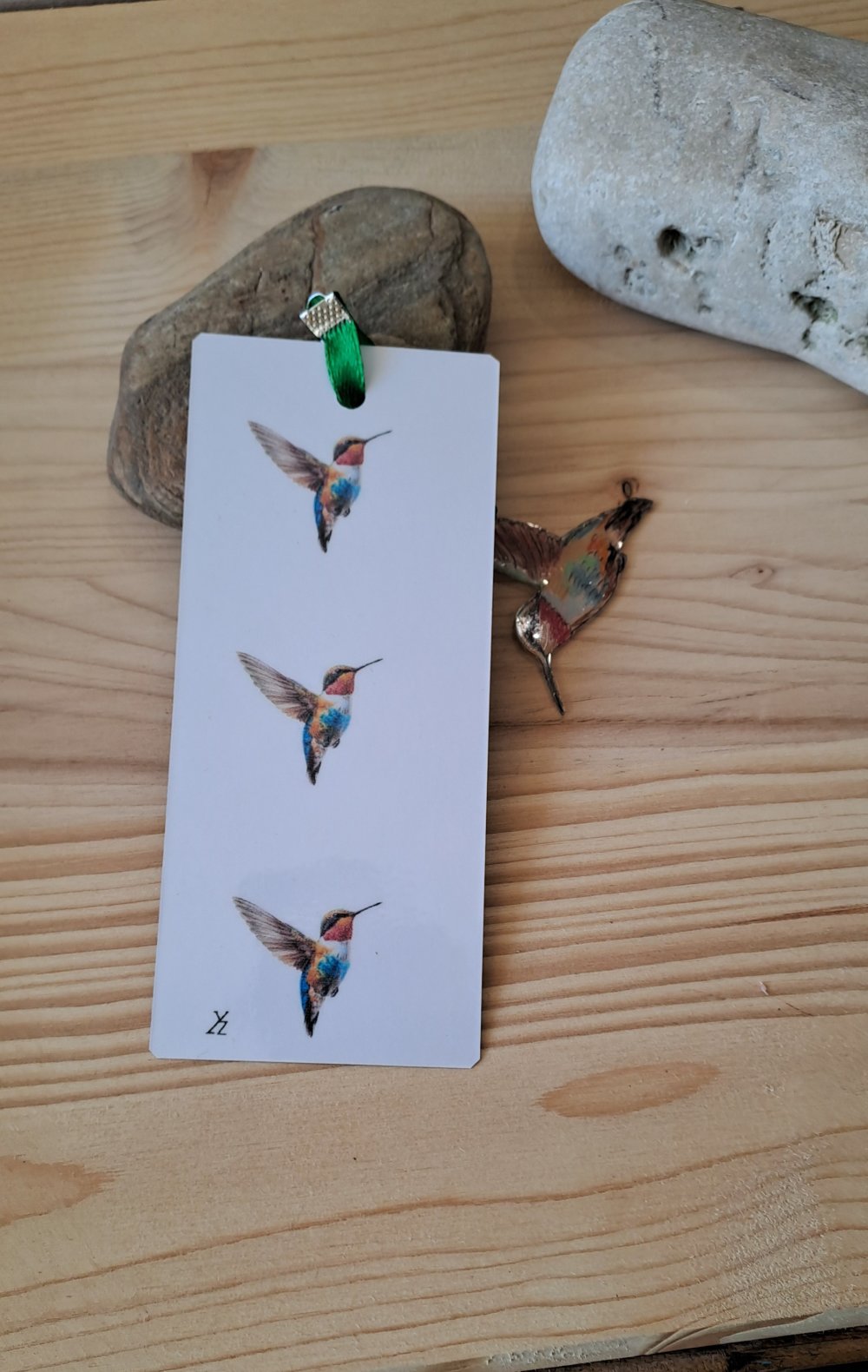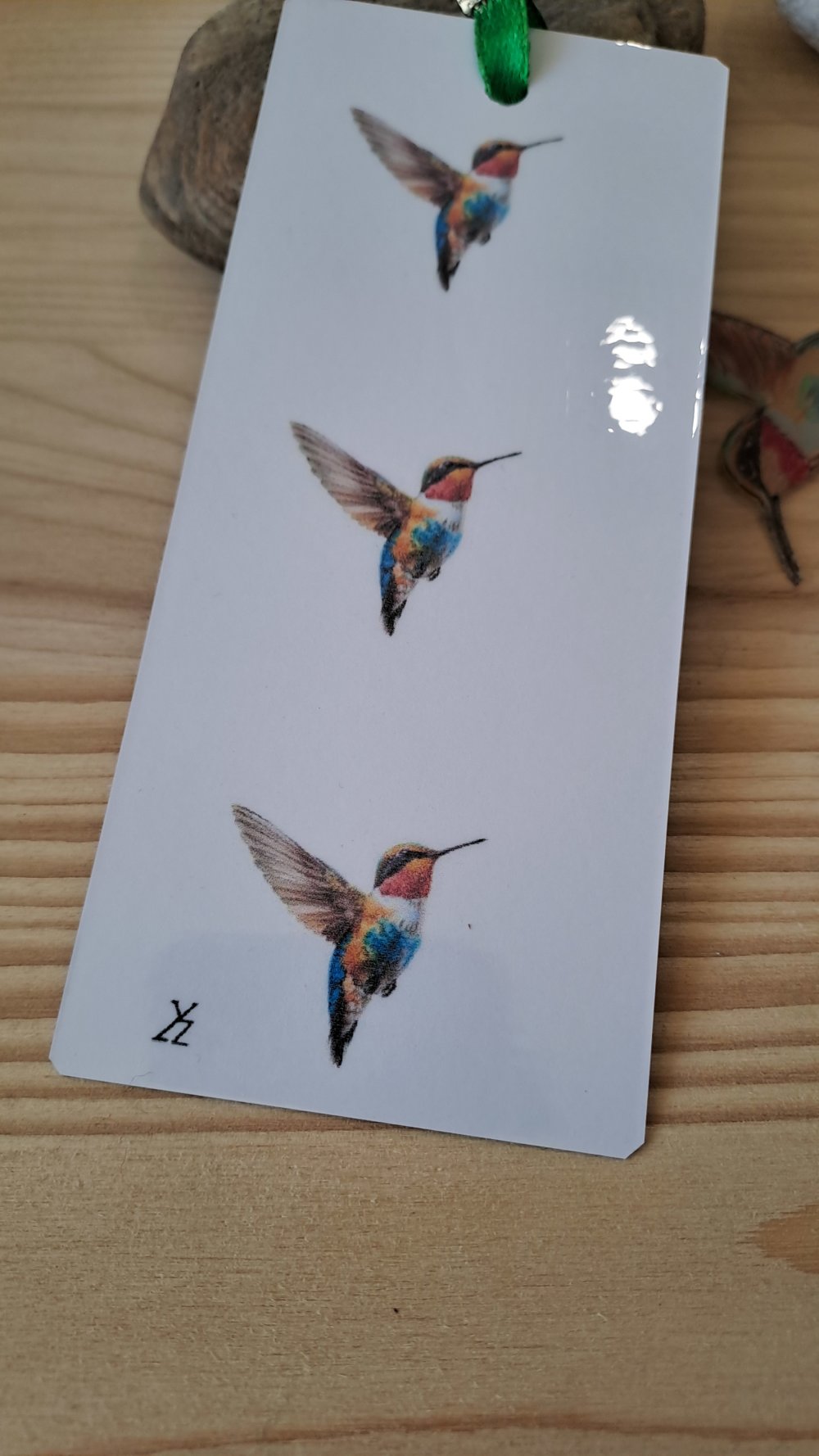 Marque-page en papier plastifié Colibris en vol Voyage au Coeur de la Nature L'accessoire idéal pour les amoureux de la lecture