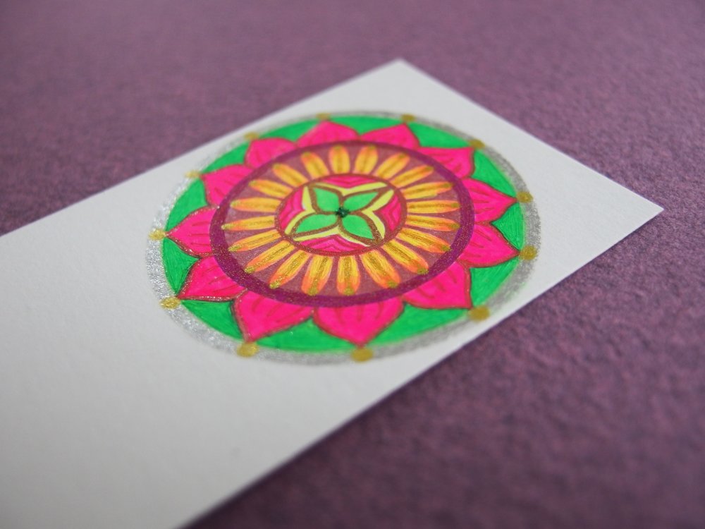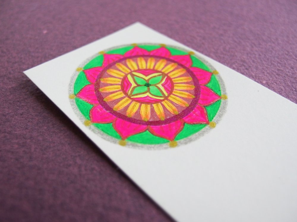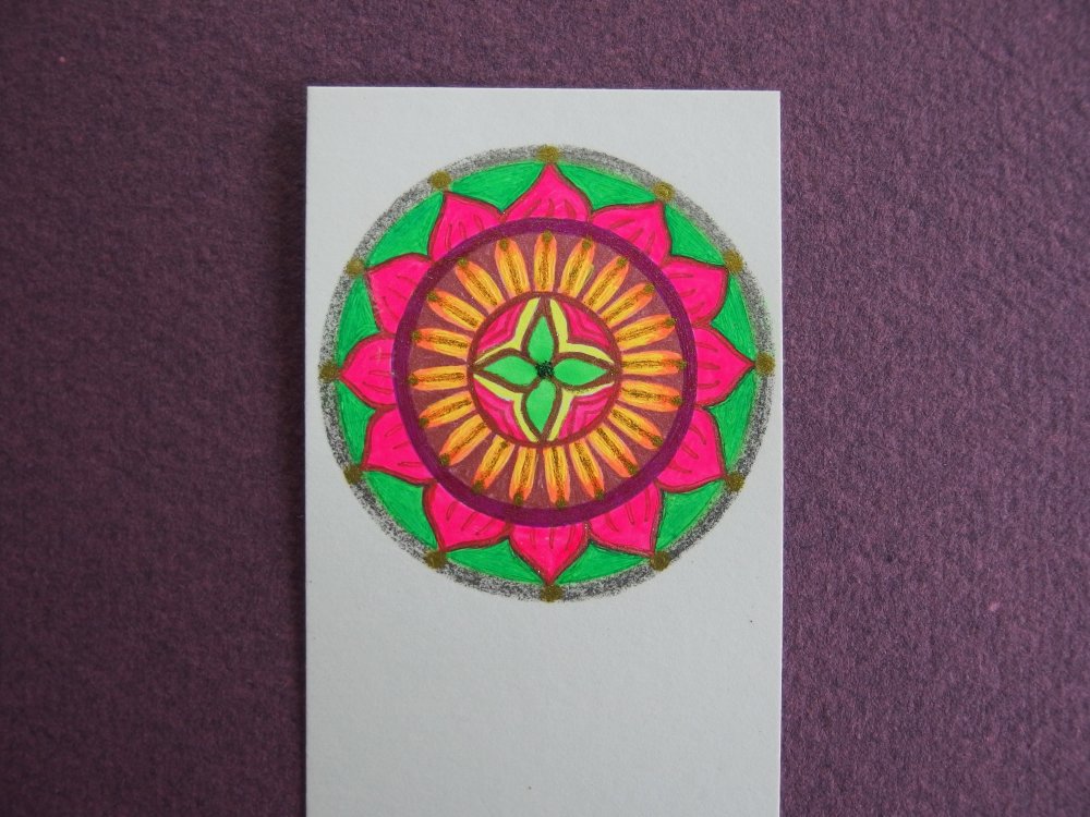 Voici un très joli marque-page, création originale d'artiste, mandala dessiné à la main, création unique.