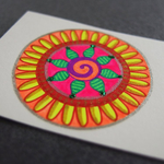 Dimensions : 15,3 cm x 5 cm ; diamètre du dessin-mandala : 4,5 cm.