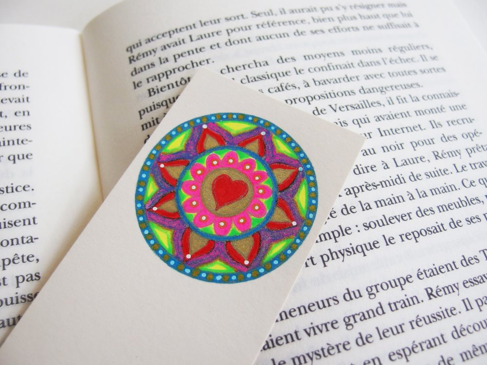 Marque-page Signet, Accessoire de Lecture, Marque-page Coeur Rouge, Marque-Page Illustré, Marque-Page d'Artiste, Marque-Page Original, Marque-Page Mandala, Marque-Page Création Pièce Unique, Marque-Page à Offrir, Marque-Page Fait Main, Cadeau Annivers