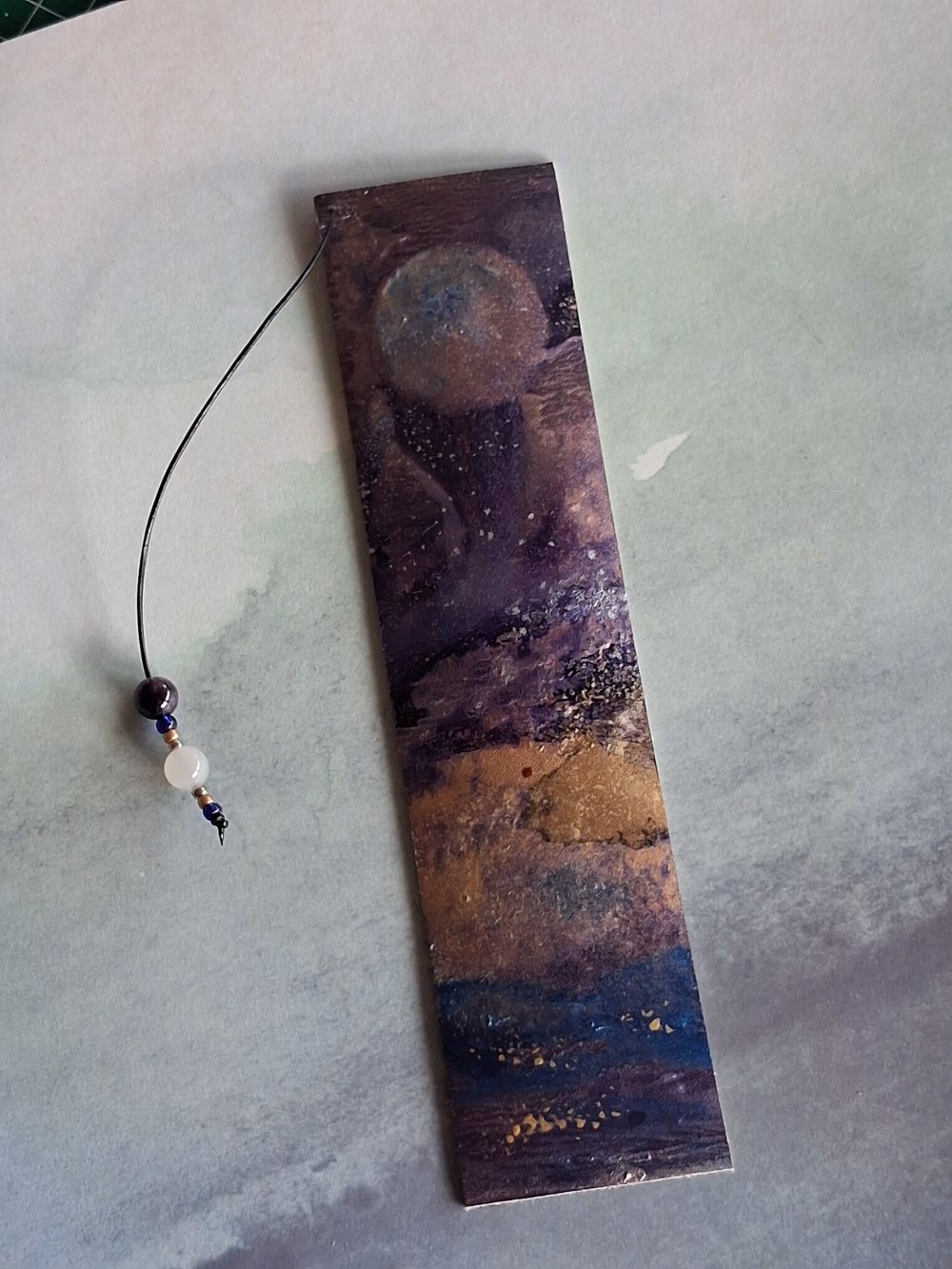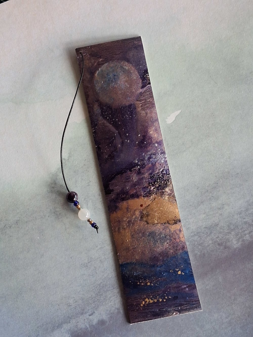 Le marque-page "au clair de lune est peint avec encres et pigments