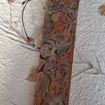 Les dessins s’inspirent de motifs piochés dans de nombreux univers. Des références à l’art, des fusions de styles, une liberté sur la technique pour un rendu toujours en quête de beauté et d’harmonie.">De ces décors peints, gravés, estampillés, subtils et chatoyants, des signets ( fil de cuir ou de coton) accompagnent les marque-pages. Des perles accordées aux couleurs de la pièce en cuir ou du graphisme. Ce signet vient se poser naturellement sur la couverture ou sur la tranche du livre … Bref, un vrai plaisir de retrouver sa lecture !