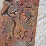 je prépare moi-même mes couleurs. toutes me préparations sont de bases aqueuses. Certaines créations sont teinté avant de le travaillé. je mélange des encres, des pigments et je me livre à toutes sortes de recherches