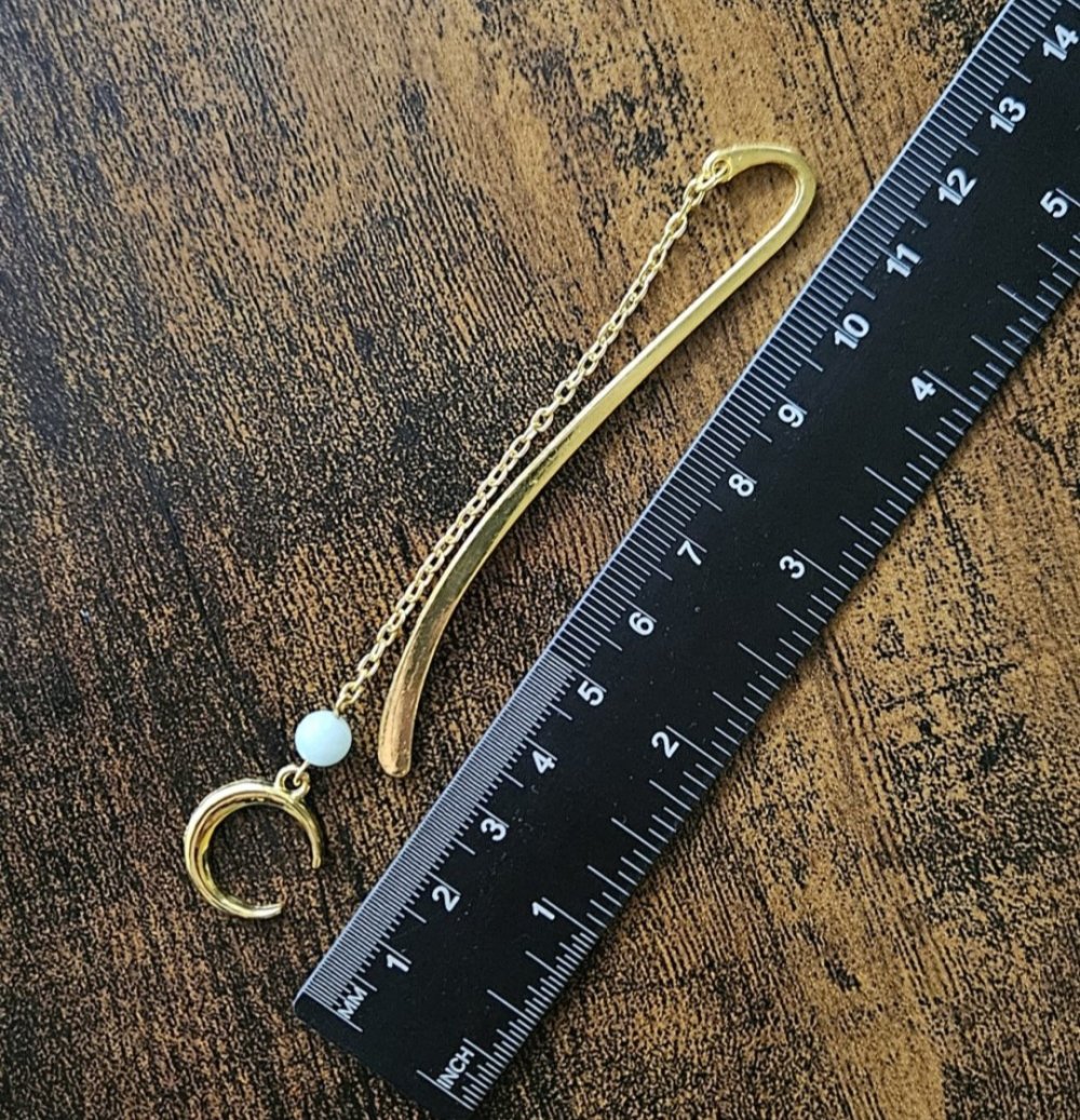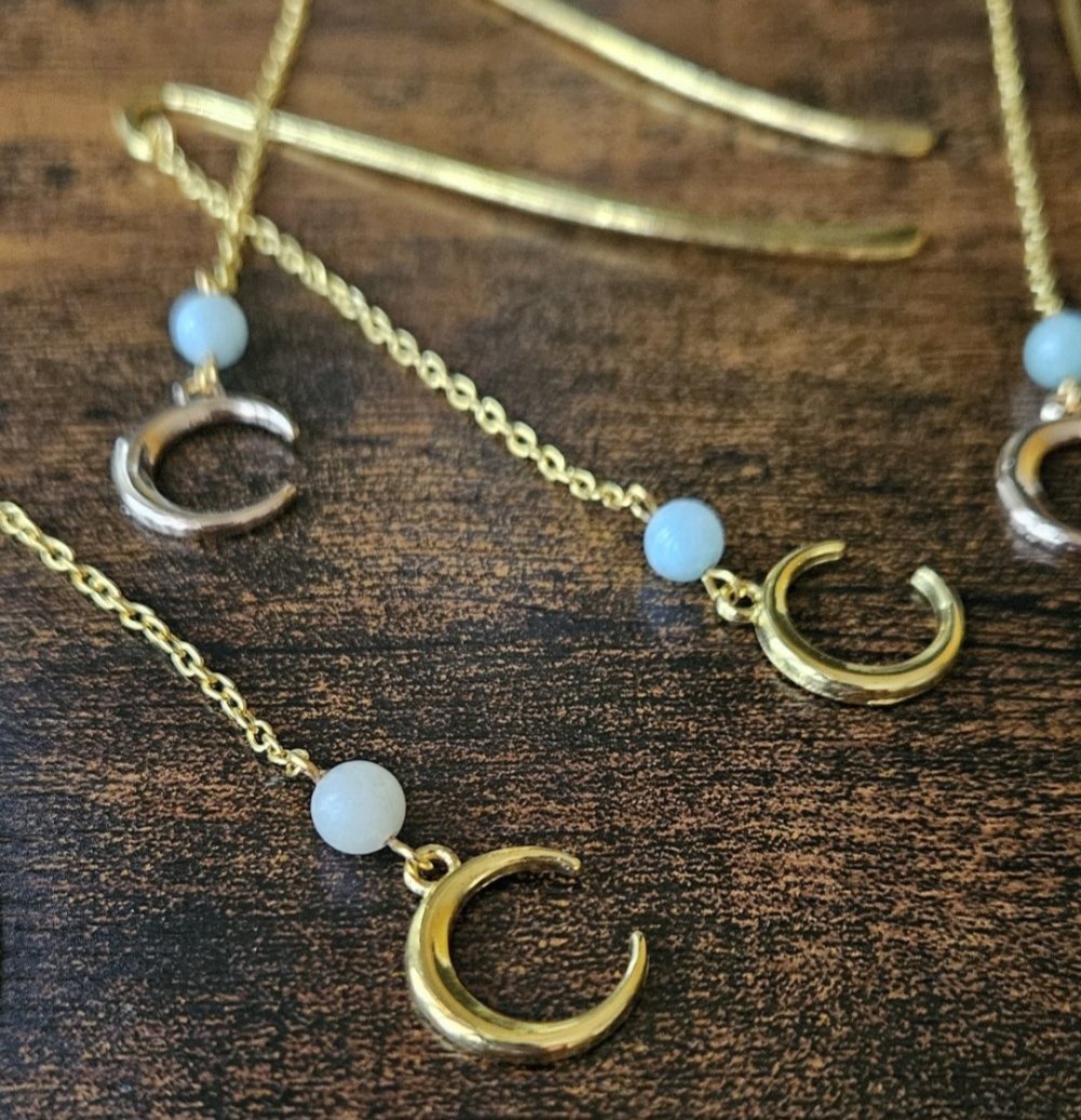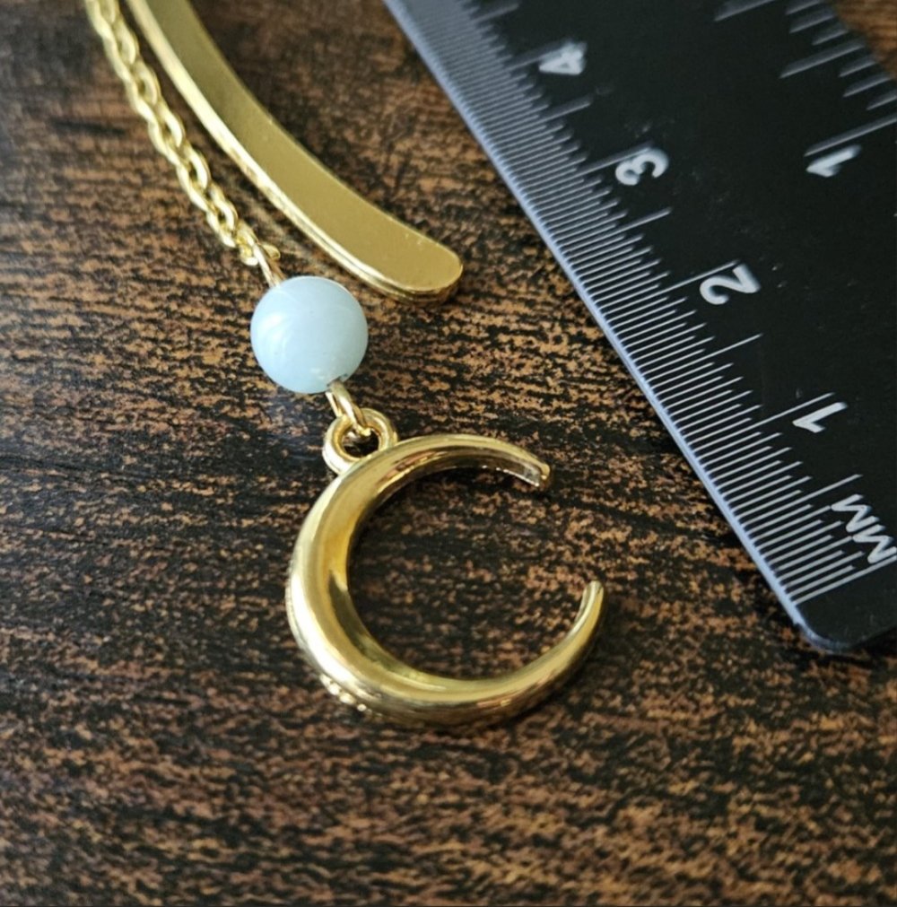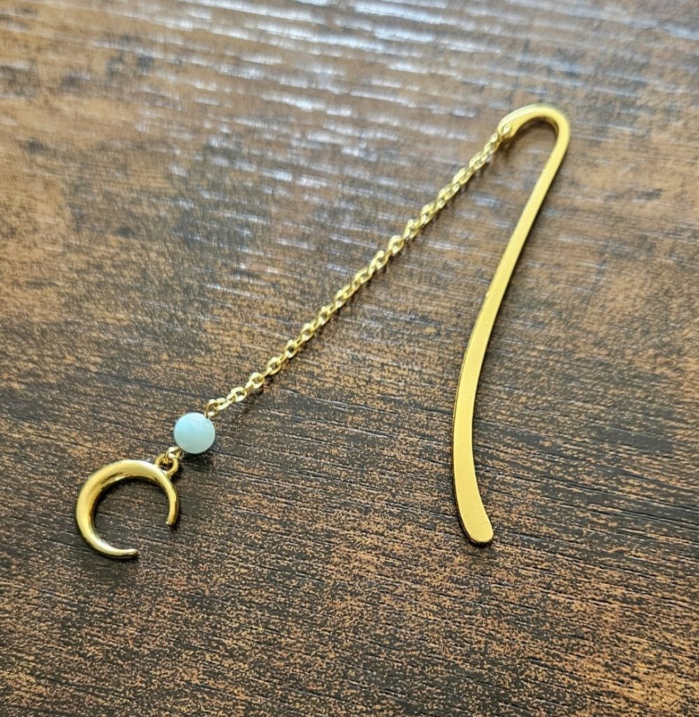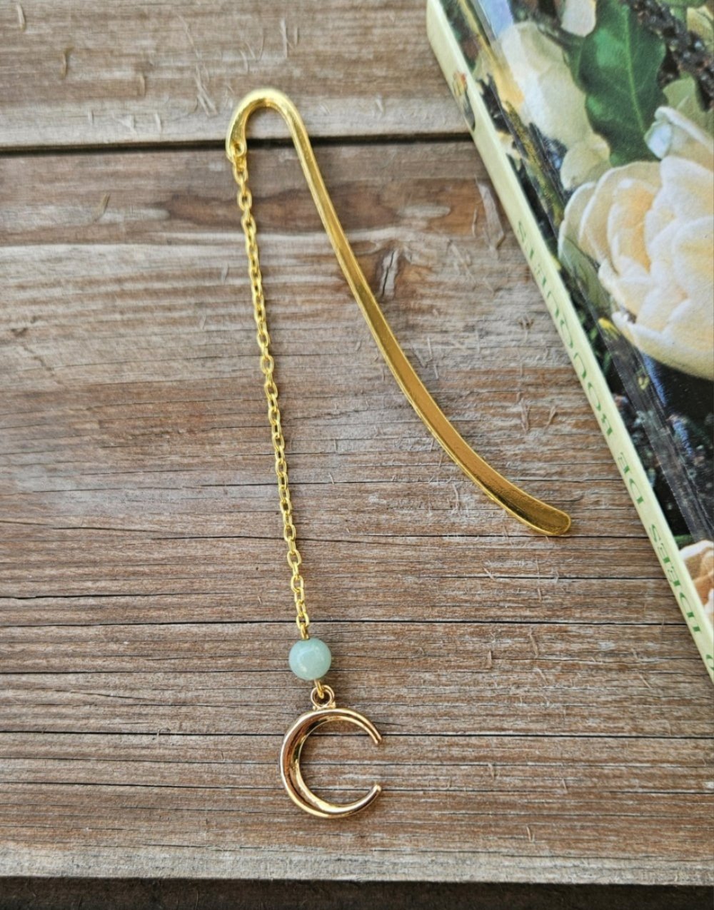 Orné d’une pierre naturelle d’amazonite et d’un délicat croissant de lune, il accompagne vos lectures avec une touche de sérénité et de magie.