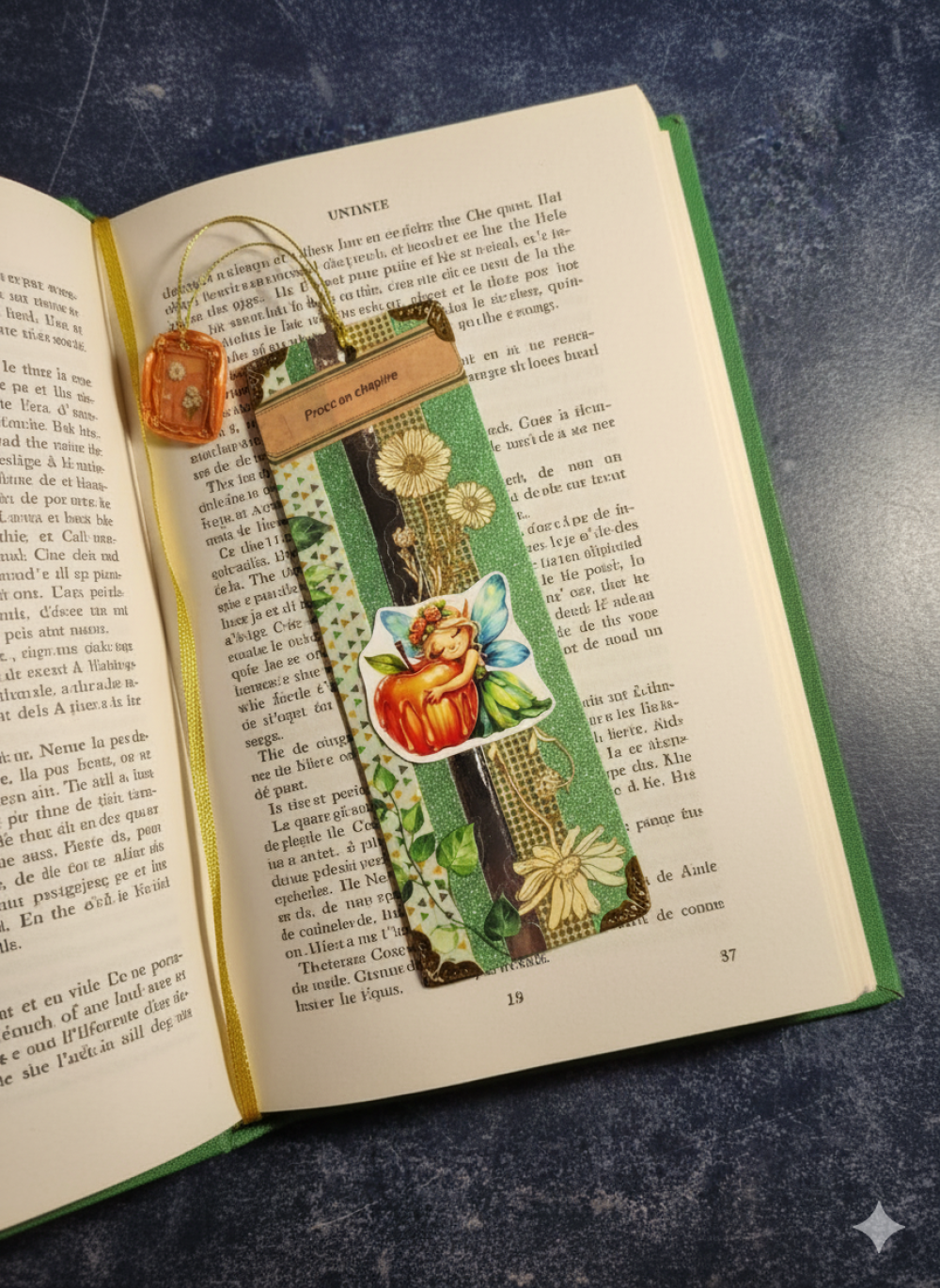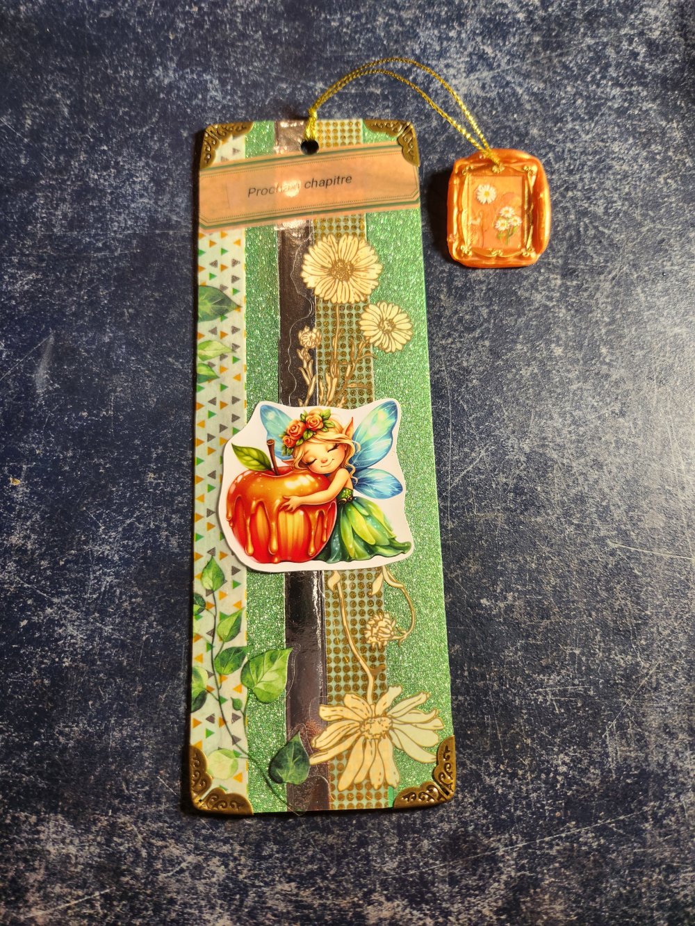 Marque-page artisanal unique mettant en avant une petite fée. Finition mini cadre façon cire à cacheter