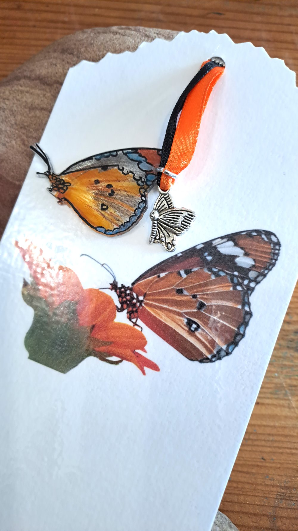Marque-pages papillon poser sur une fleur, fabrication artisanale , signet unique pour collectionneur amateur de lecture. grand marque-page