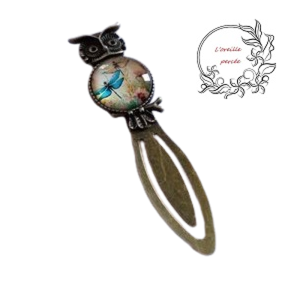 Très joli marque page bronze avec tête de hibou et rehausser de son cabochon rond en verre.
