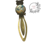 Très joli marque page bronze avec tête de hibou et rehausser de son cabochon rond en verre.