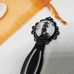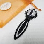 Marque-page métal cabochon verre motif sorcière noir et blanc