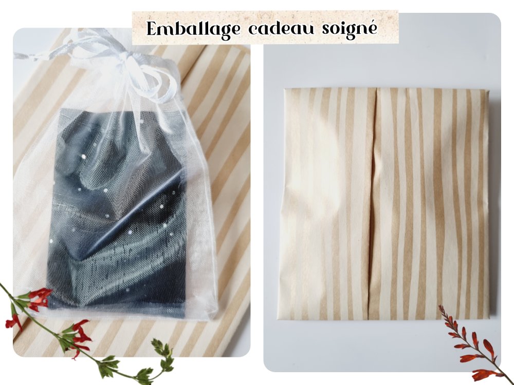 Si vous souhaitez des emballages cadeaux séparés pensez à me le préciser. Le cas échéant le tout sera emballé dans un joli paquet cadeau.