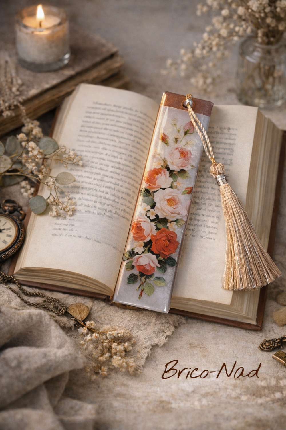 Glissez ce marque-page délicatement fleuri entre les pages de votre livre préféré et laissez la poésie accompagner vos lectures.