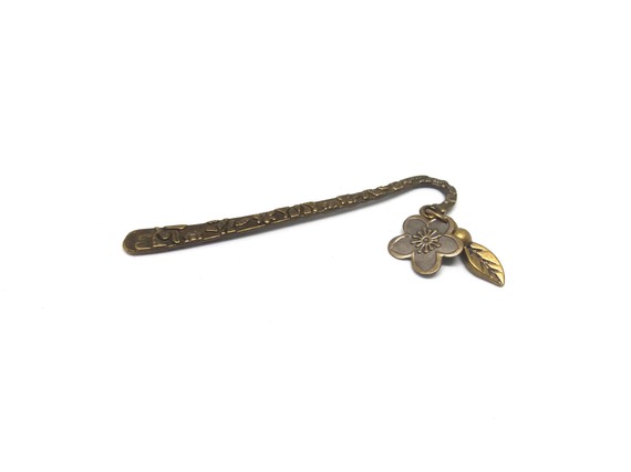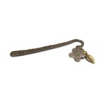 Le marque pages est en métal couleur bronze antique. Les breloques fleur et feuille sont en métal bronze également.