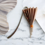 Chaque pièce est ornée d’un joli éventail, mesurant environ 4,7 cm de hauteur, avec une largeur maximale de 3,5 cm, accompagné de délicates chainettes pour une touche élégante.