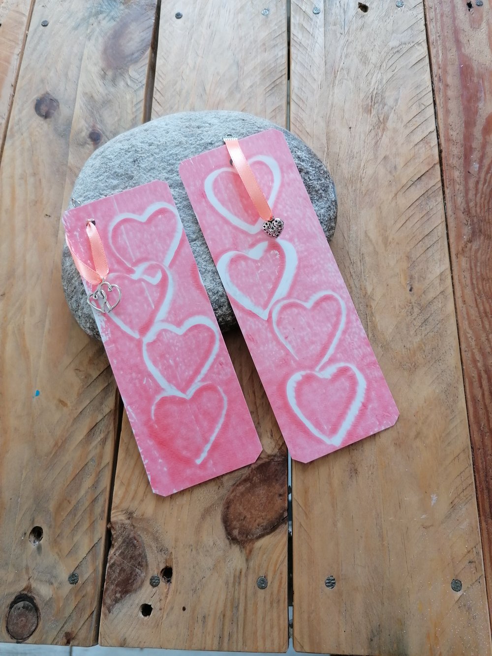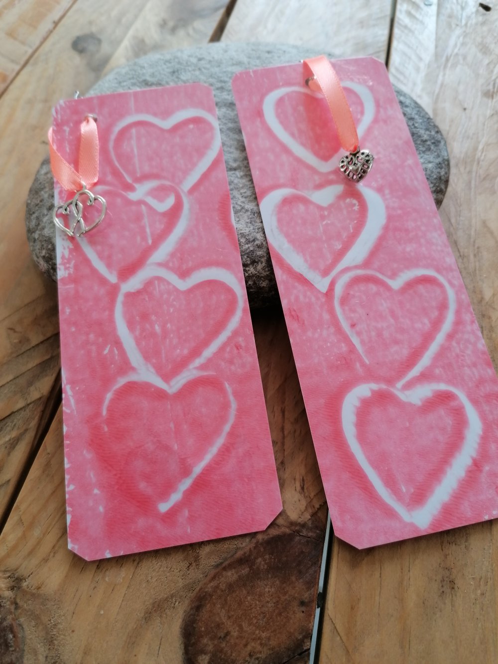 lot 2 Marque -pages cœur roses , cadeau fête de Noel, thème de mariage les coeurs