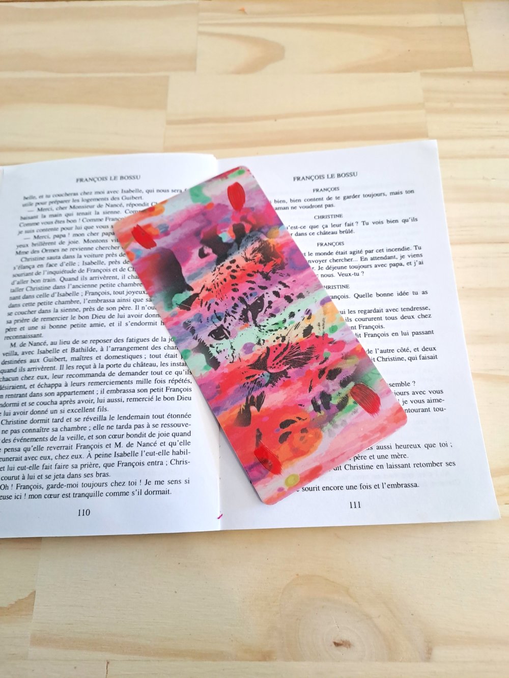 Marque-pages papier motif Léopard modèle unique artisanal, dos du signet peint à la main