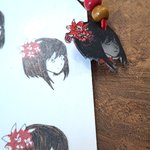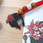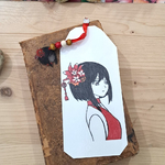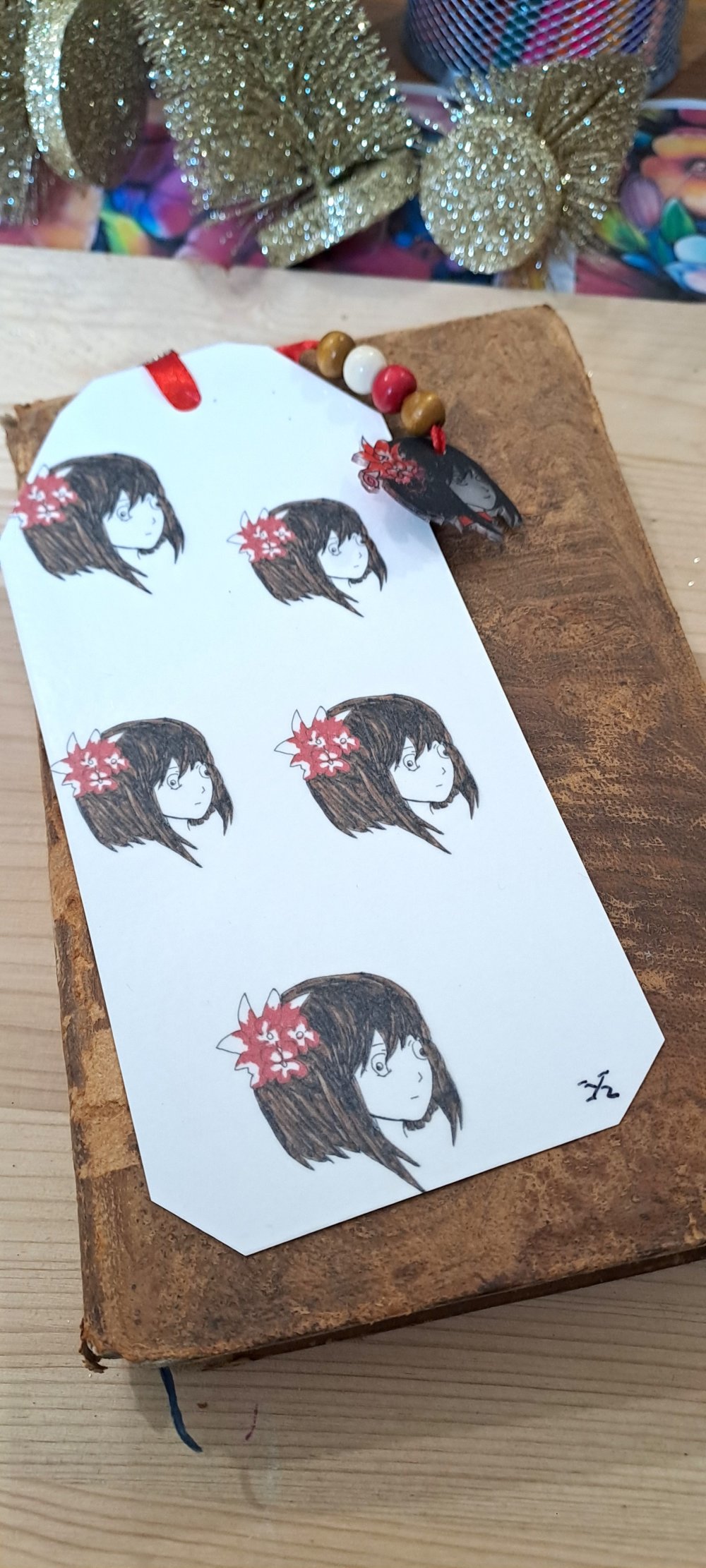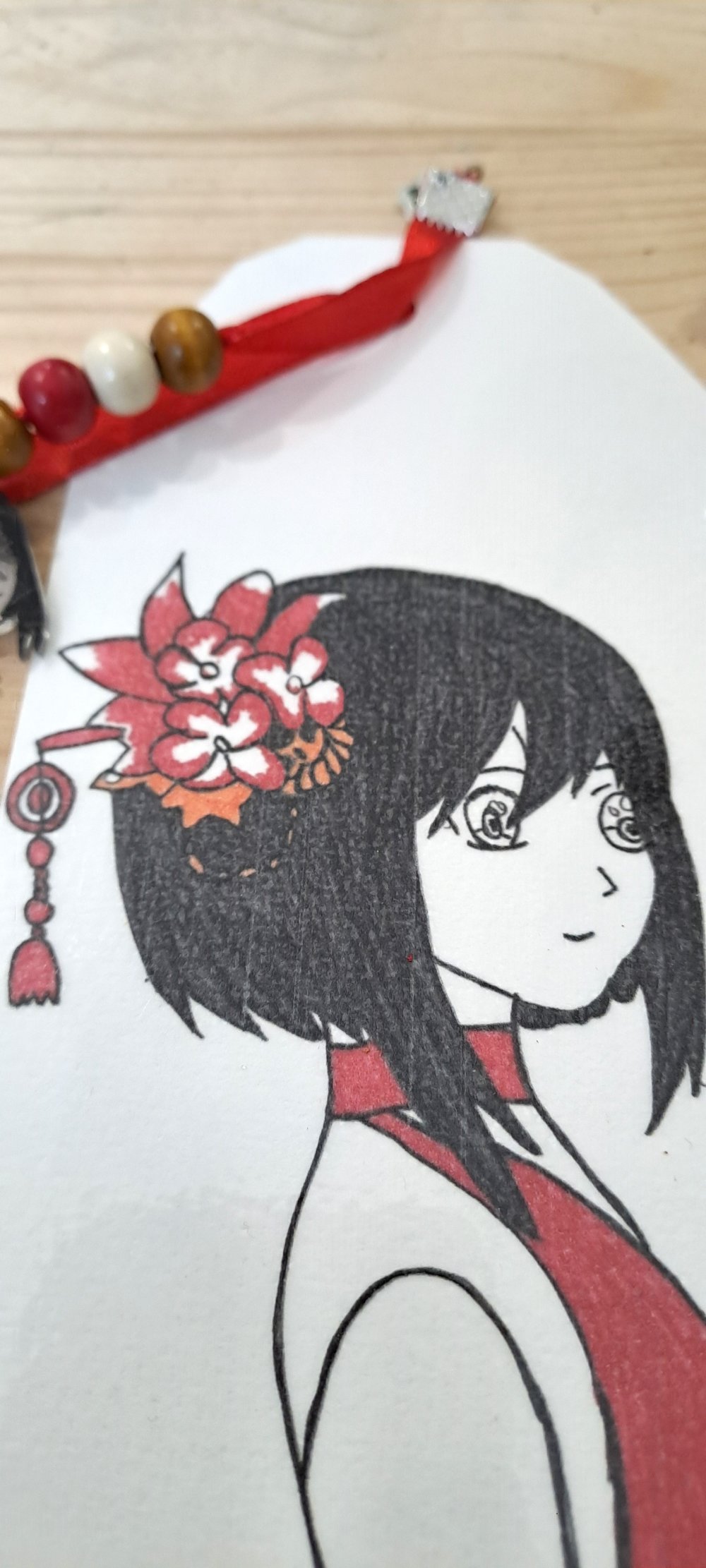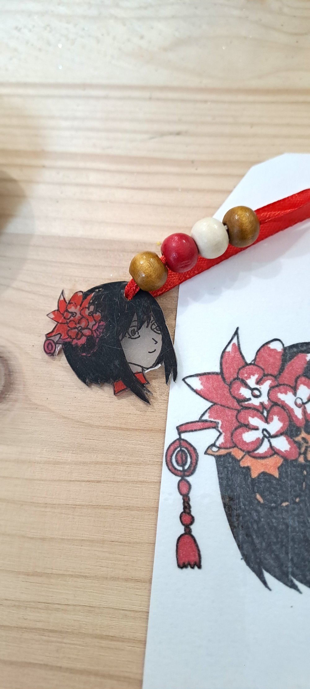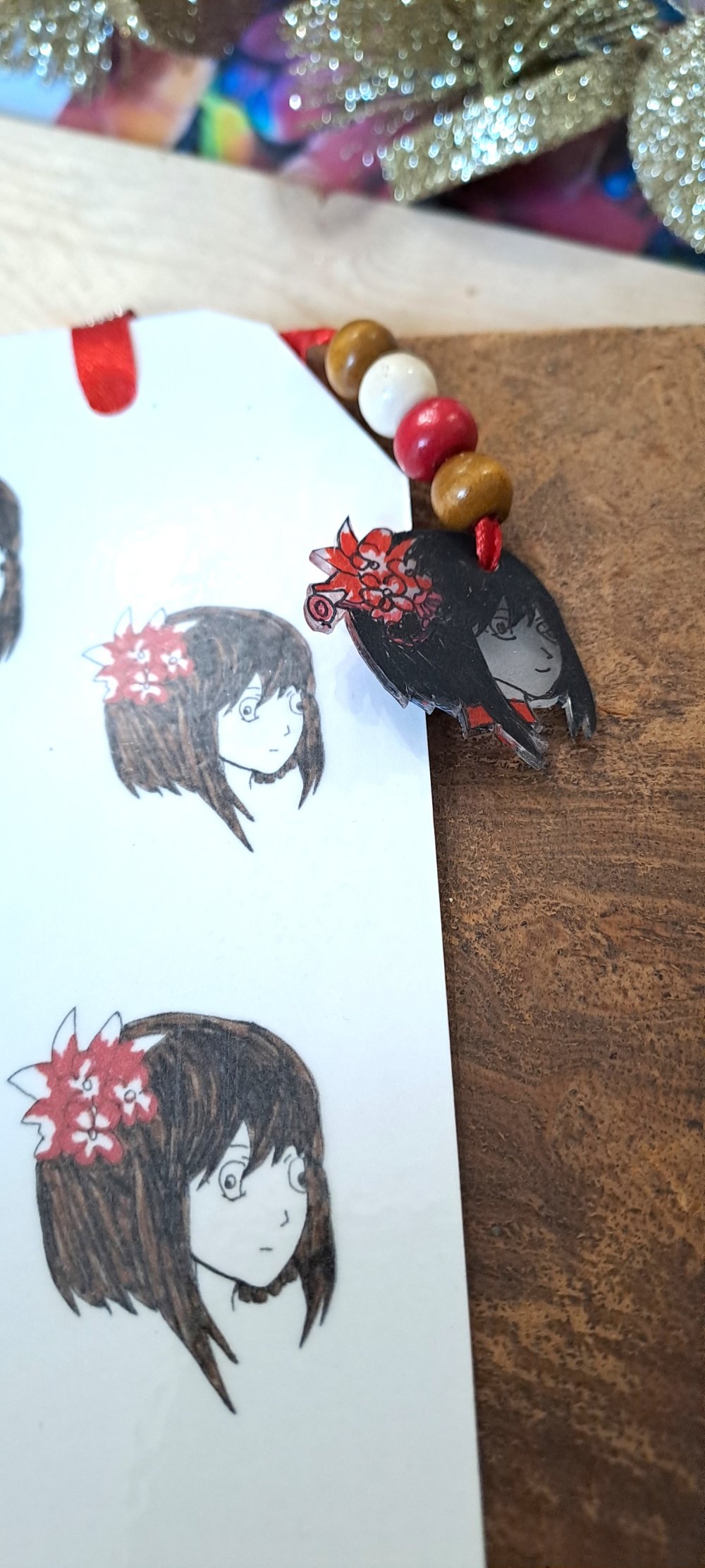 Modèle unique fait main ,création artisanale Perles bois et ruban de satin rouge