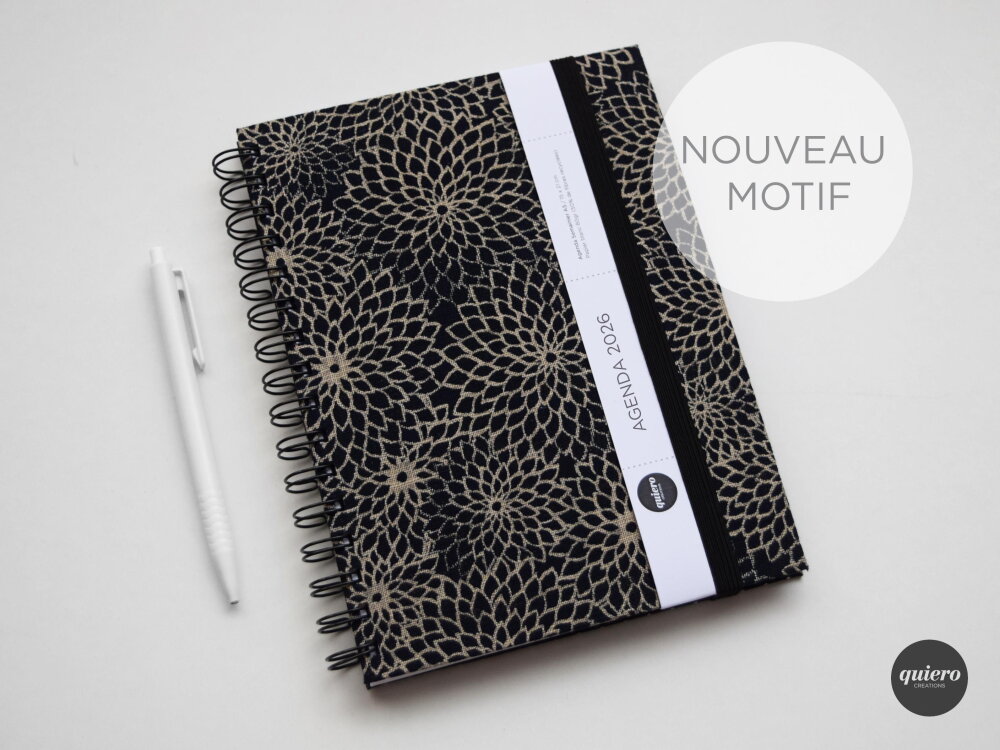NOUVEAU motif* Agenda A5 2026 / Avec tissu Japonais - Fleurs beige sur bleu / 15x21cm / Nouvel An / Idéal pour le Bureau / Organisation